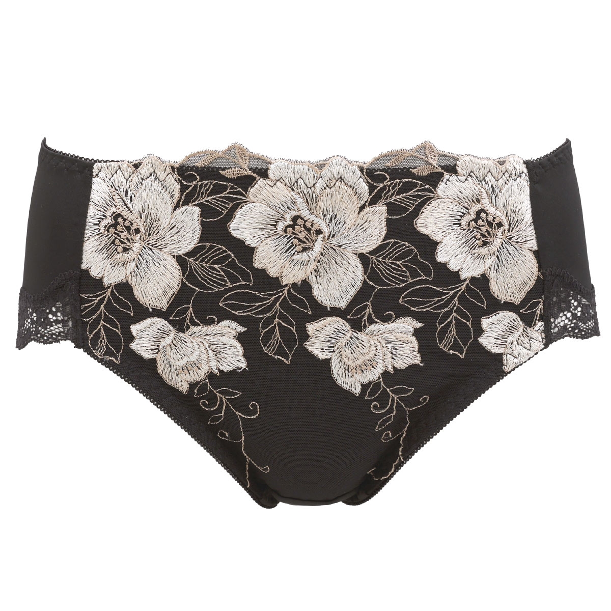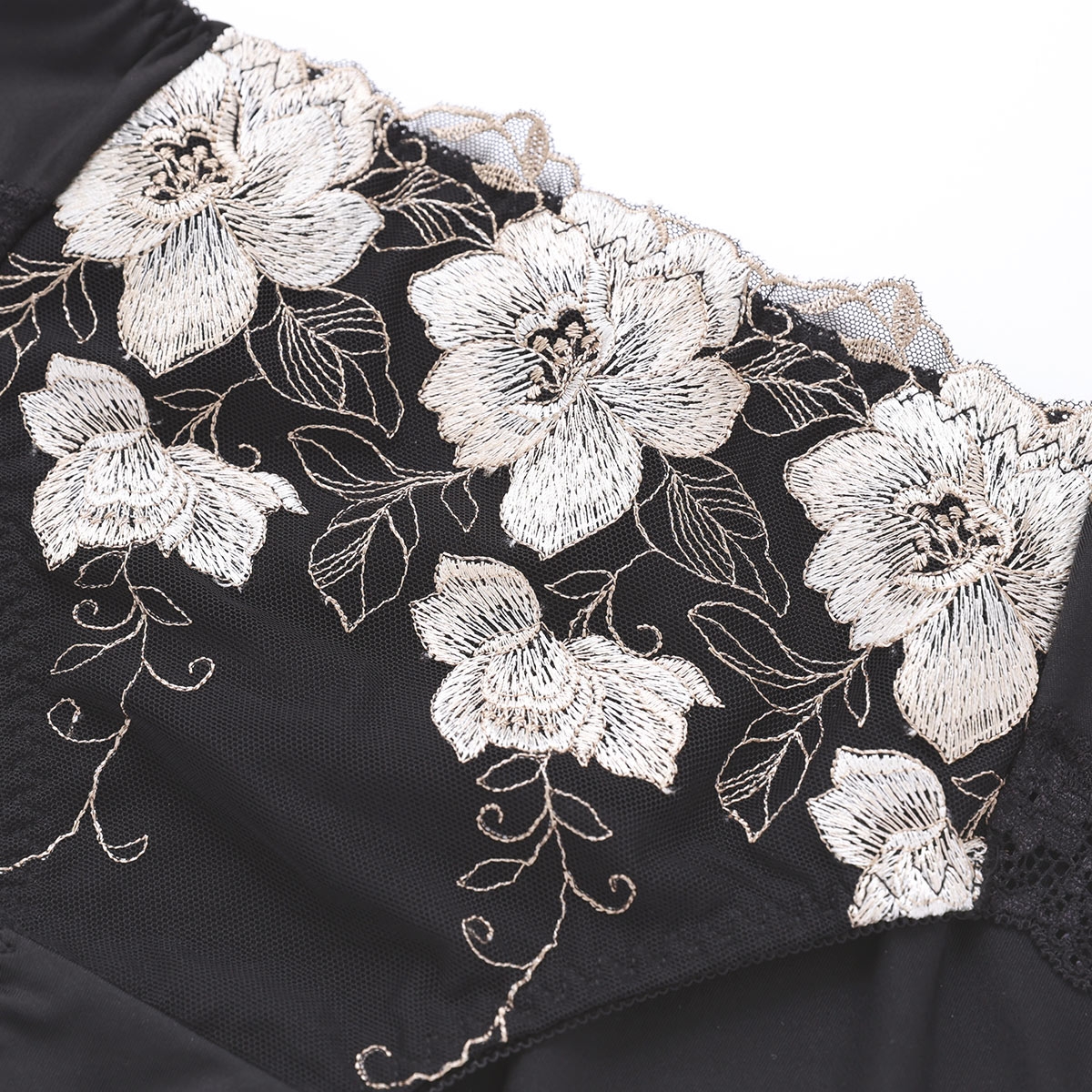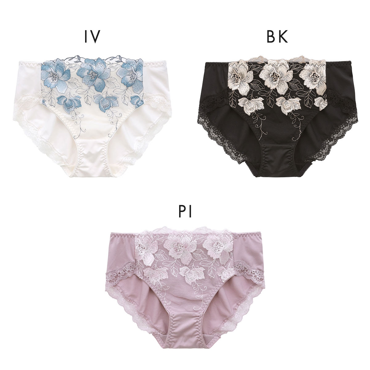 気になる背中をしっかりサポート!キレイ工房「美背中シルエットブラ」シリーズのペアショーツ。大ぶりの花柄刺繍をあしらい、上品で美しいデザインです。