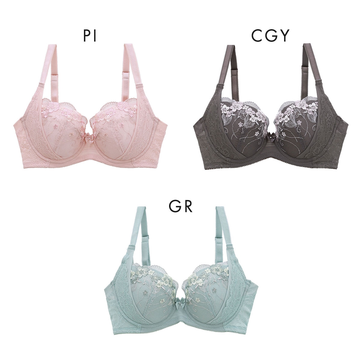 カラーPI-ピンク、CGY-チャコールグレー、GR-グリーン