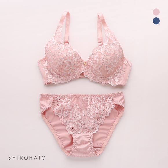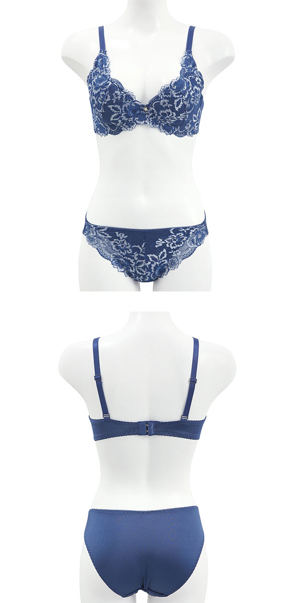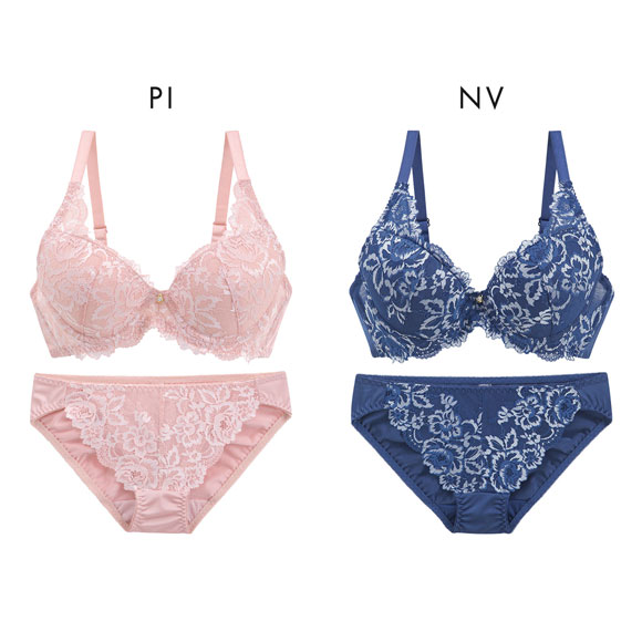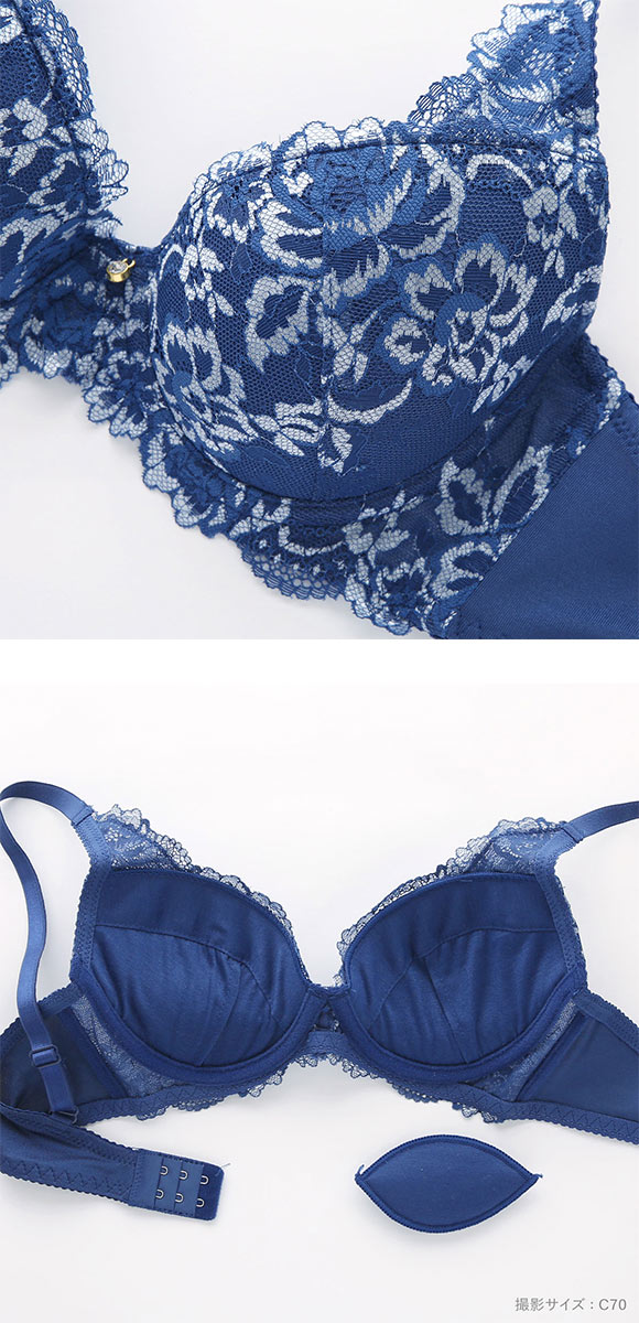 ブラはもっちり下厚のモールドカップに取り外し可能なレモンパッドがついたWパッド仕様で、しっかりボリュームアップ。カップとストラップをつなぐレースパネルが、気になる脇のプヨ肉もカップに入れ込み、バストをしっかり引き上げます。