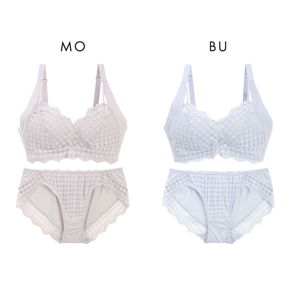 メルトココ ふわとろカップ ノンワイヤーブラ ブラジャー ショーツ セット 脇高 ギンガムチェック(BU-ブルー-M/M)