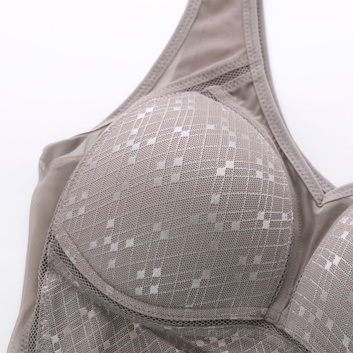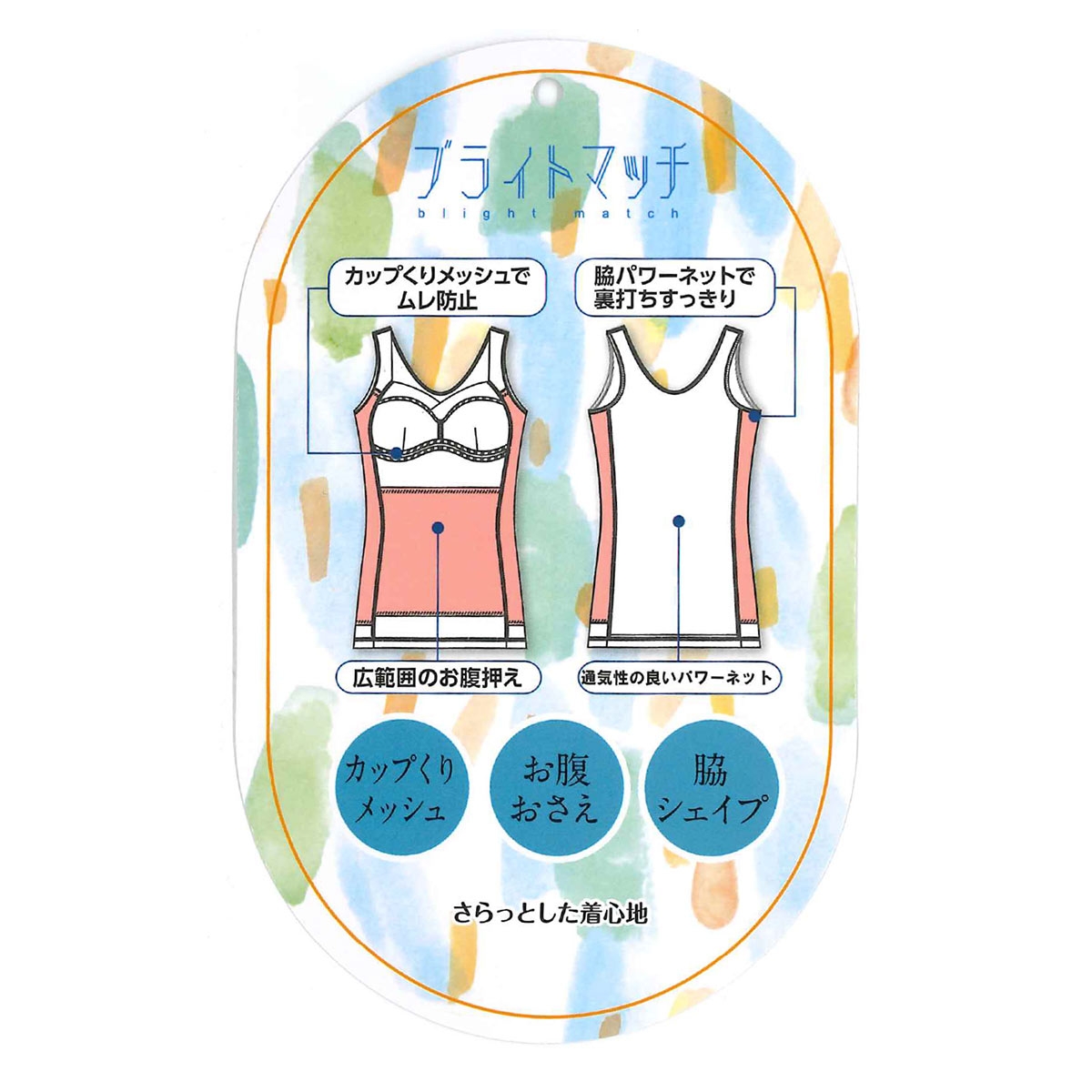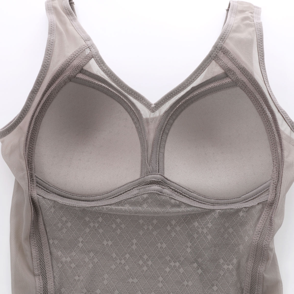 | 仕 様 | ・カップ付き ・アンダーゴムなし ・パッドポケットなし ・ワイヤーなし ・サイドボーン:なし ・肩紐調節:不可 ・おなかおさえ ・脇シェイプ ・カップくりメッシュ |