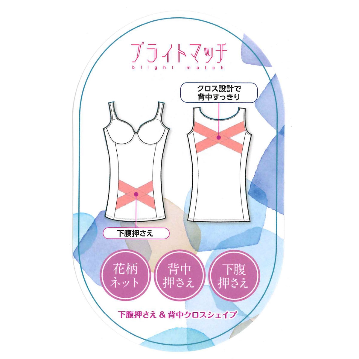 ブライトマッチ 花柄 ボディシェイパー カップ付き ブラトップ 下腹おさえ 背中おさえ 補正下着 涼しい
