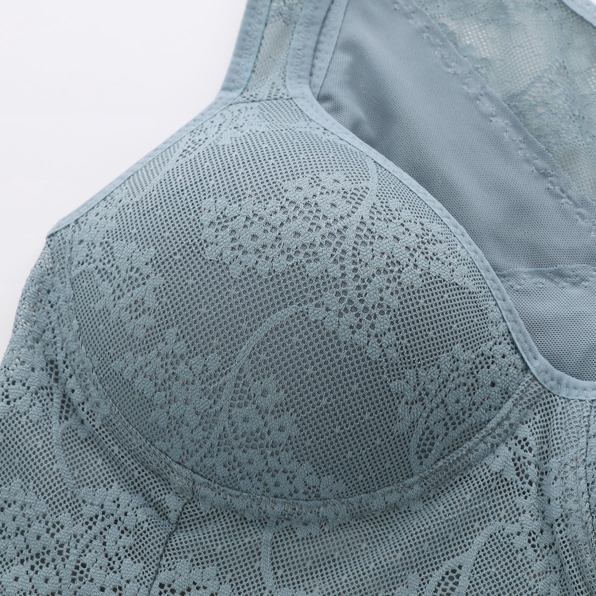カップ部分はやわらかく、バストにフィット。モールドカップでまんまる綺麗なバストシルエットをメイクします。花柄ネットでシンプルながらもエレガントなデザインです。