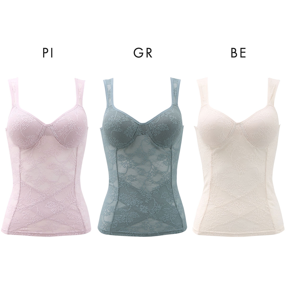 カラーPI-ピンク、GR-グリーン、BE-ベージュ