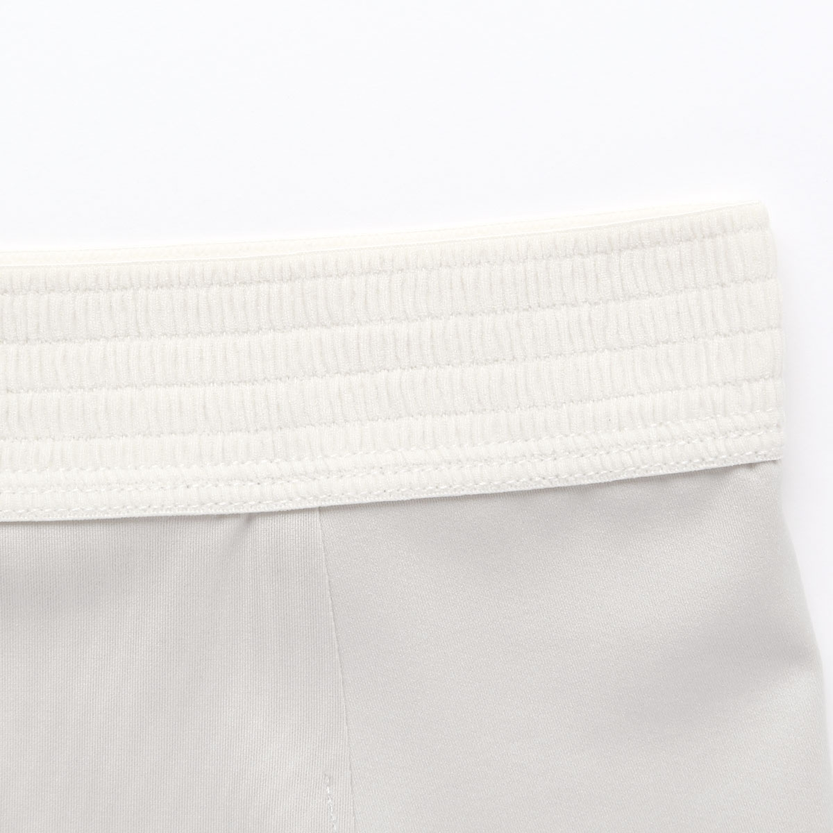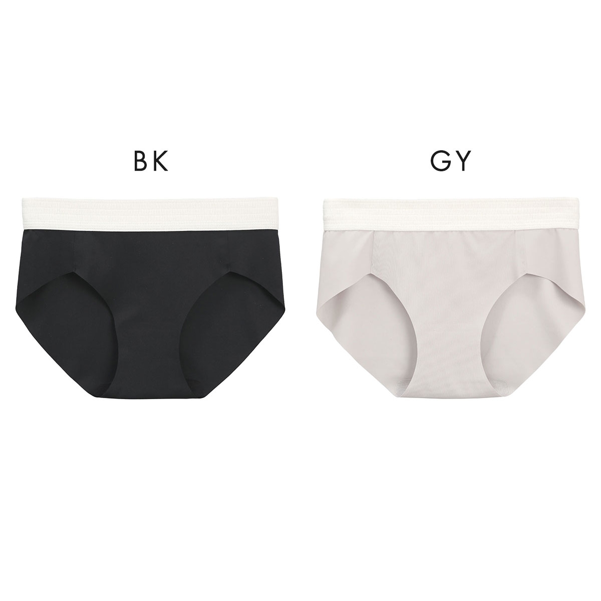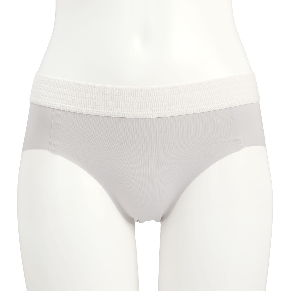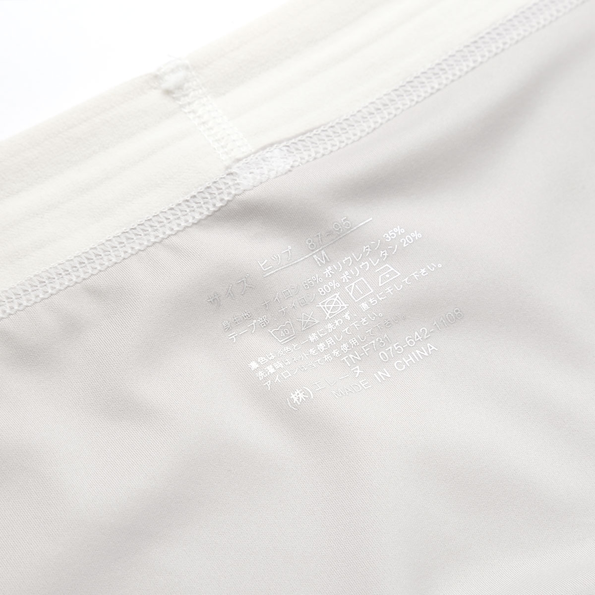 身生地は伸縮性に優れた、するんとなめらかなフリーカット素材。ゴムを使用せず、ウエスト・脚口は切りっぱなし始末、ショーツのサイドとクロッチ肌側はシームレスの接着仕様なので食い込みにくく、締め付け感が少ないのが特徴です。