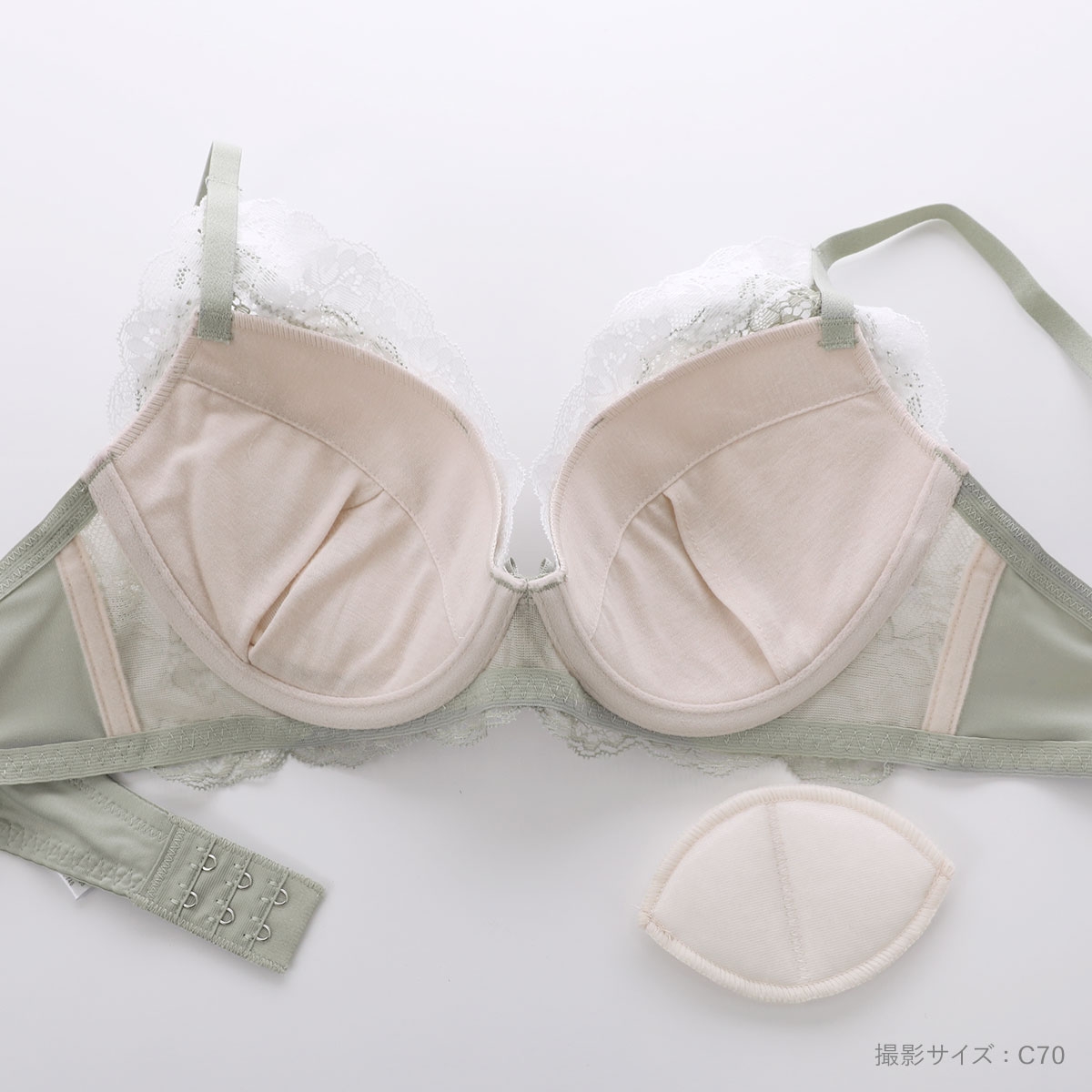 ブラはモールドカップに取り外し可能なレモンパッド付きで、しっかりボリュームアップ。