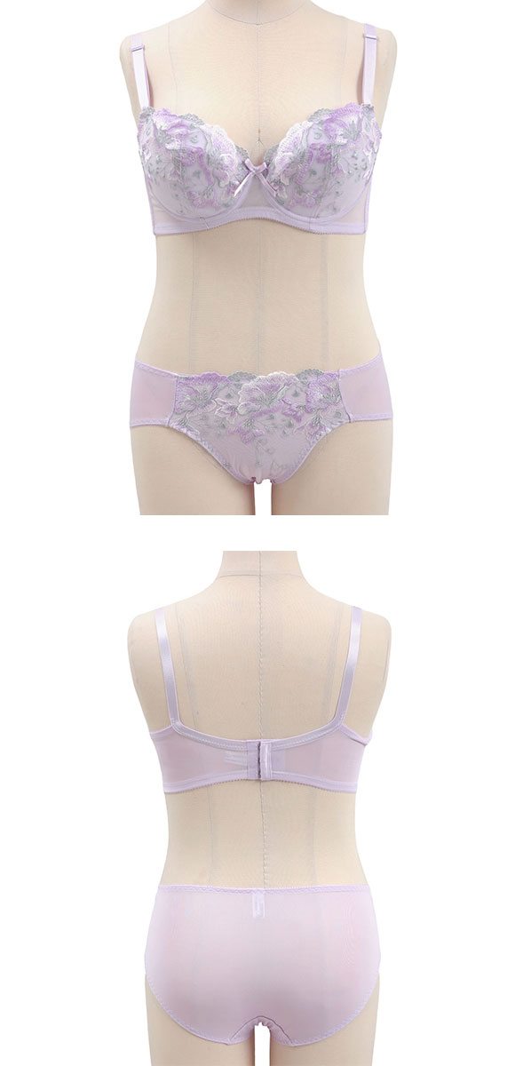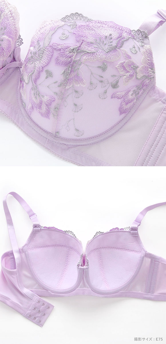 段差すっきり体験 ロイヤルピオニー グラマーブラセット DEF70-90 アンダー大きいサイズ ブラジャー ショーツ セット 脇肉 脇高 お得(LPU-薄パープル-D70-M)
