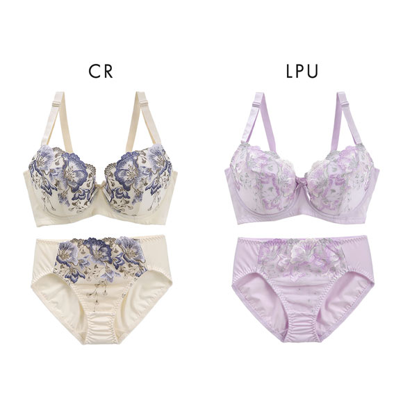大輪のピオニー刺繍が美しい、機能付きブラショーツセット。胸もとのミニリボンが愛らしさを添えるアクセント。