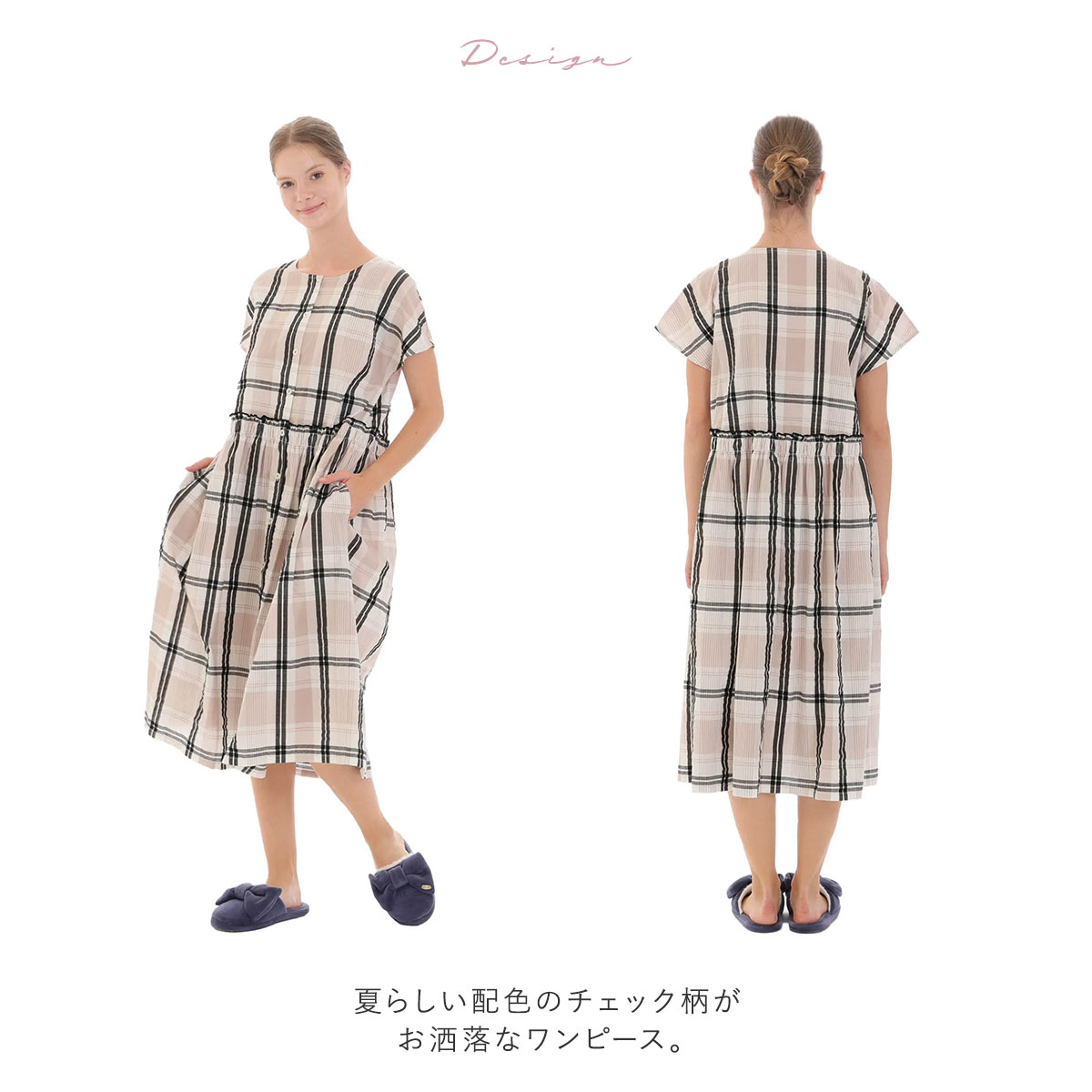 ナルエー NARUE パジャマ 変わり織りサッカーチェックワンピース ルームウェア ドレス 半袖 綿100%ナルエー NARUE パジャマ 変わり織りサッカーチェックワンピース ルームウェア ドレス 半袖 綿100%