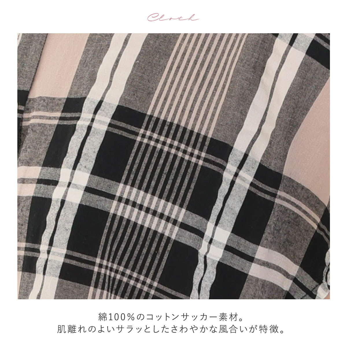 さらりとした着心地のチェック柄サッカー素材ワンピース