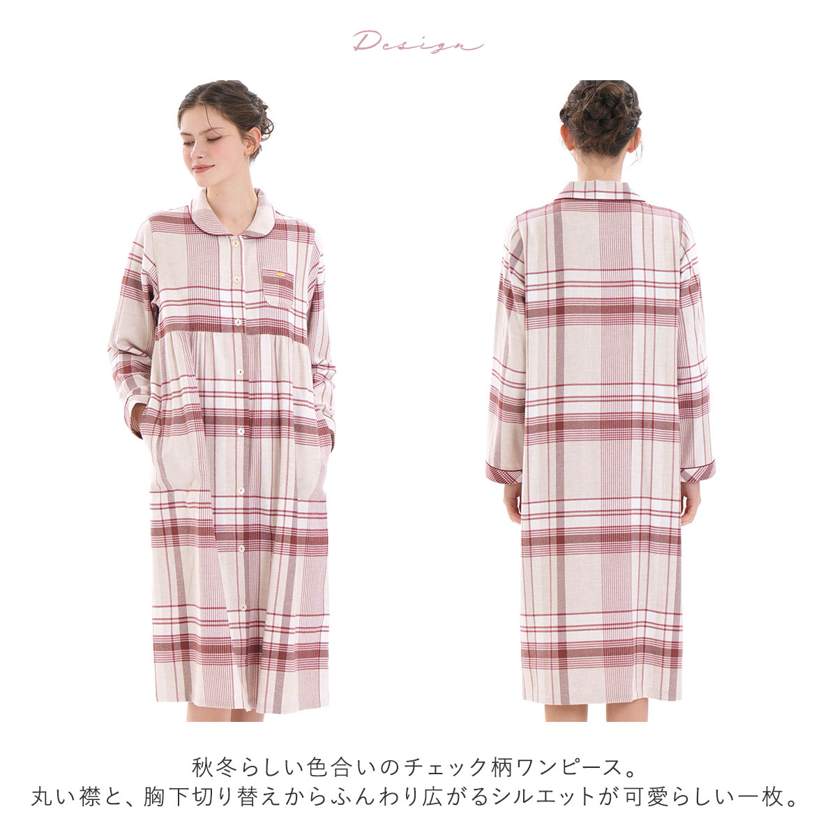 ナルエー パジャマ コットンフランネルチェックワンピース ルームウェア 長袖 NARUE