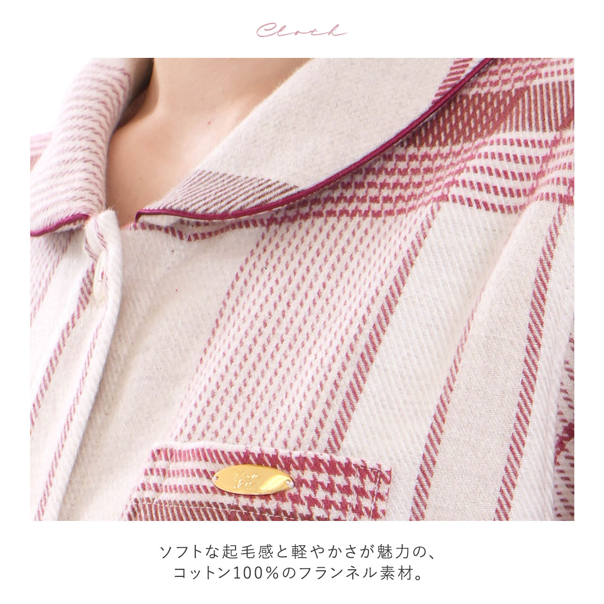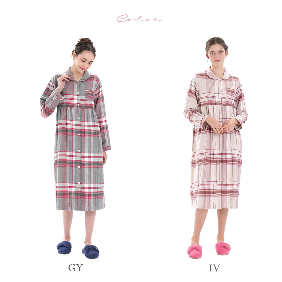 ナルエー パジャマ コットンフランネルチェックワンピース ルームウェア 長袖 NARUE(IV-アイボリー-M-L)