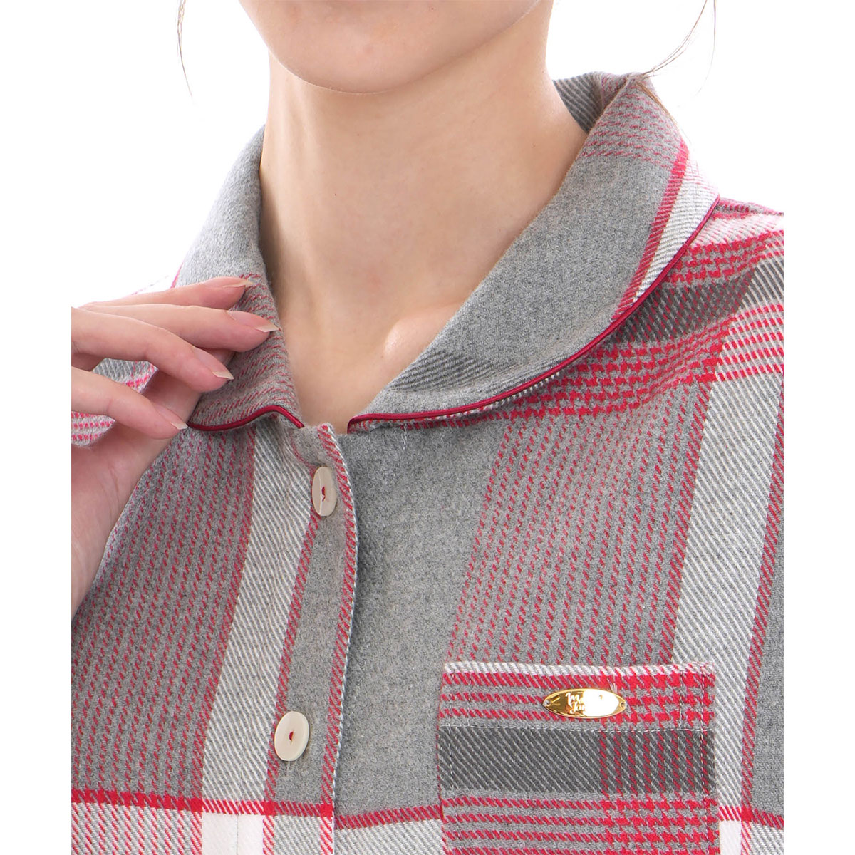 ナルエー パジャマ コットンフランネルチェックワンピース ルームウェア 長袖 NARUE(GY-グレー-M-L)