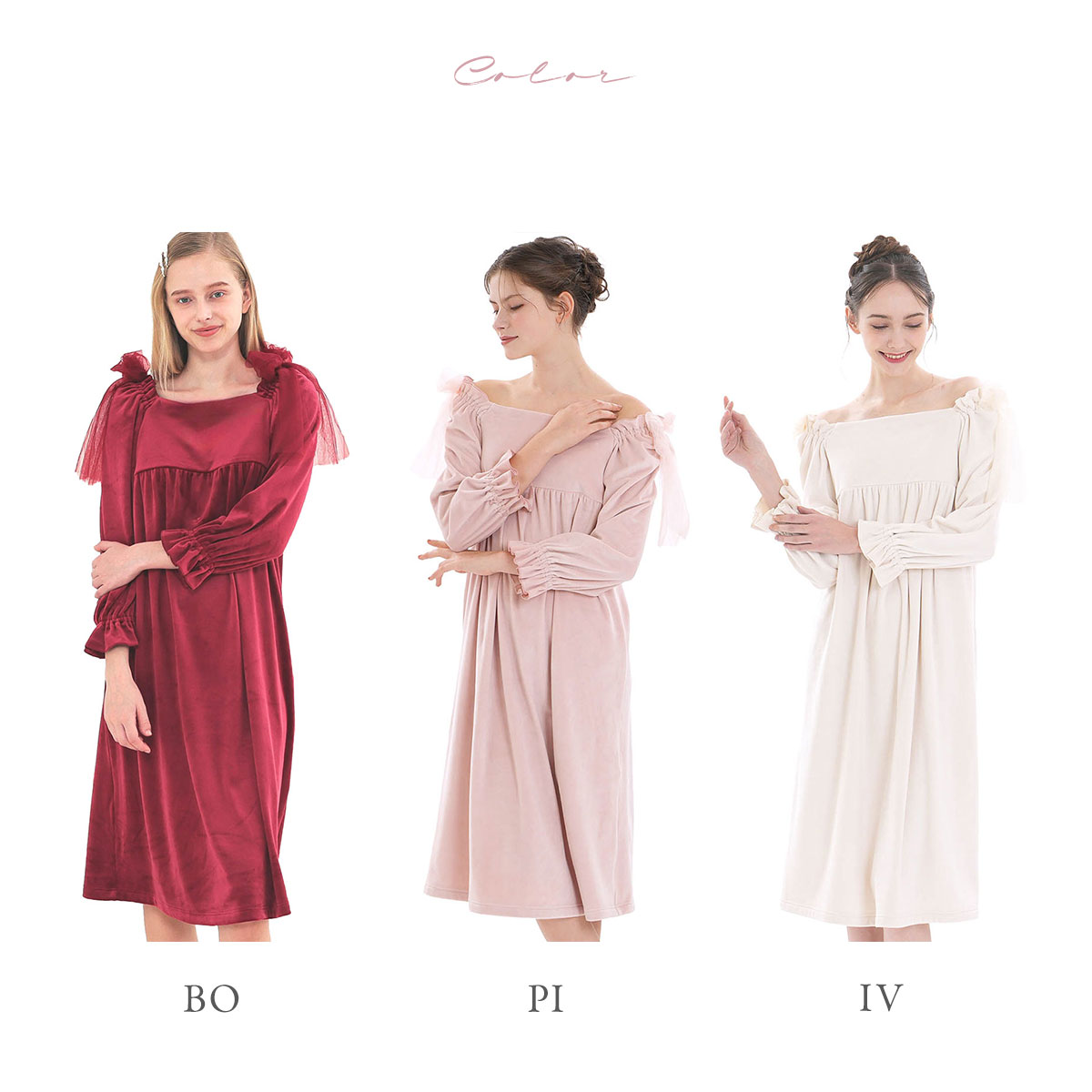 | カラー | BO-ボルドー、PI-ピンク、IV-アイボリー |