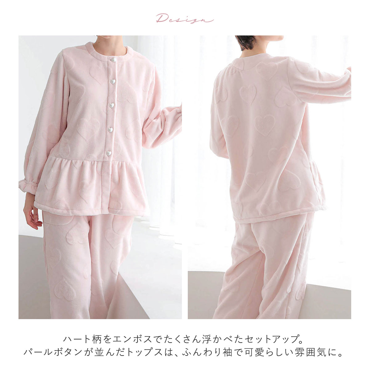 ナルエー★ふわふわサラサラで暖かな着心地のハート柄パジャマ