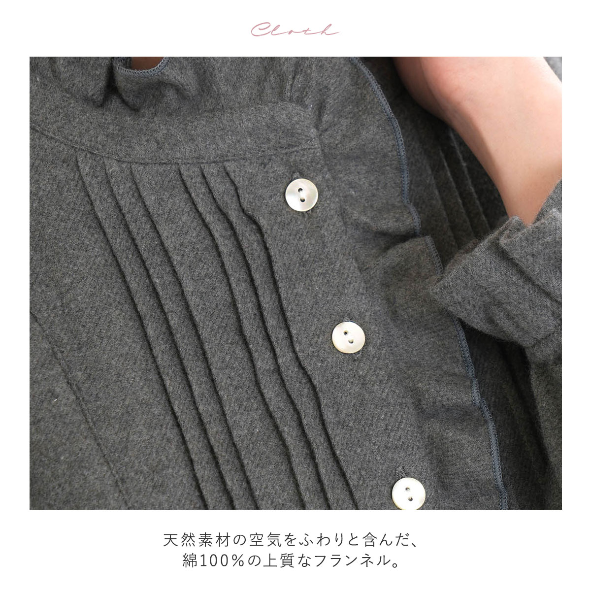 ナルエー パジャマ コットンフランネルシュクレフリルパジャマ ルームウェア 上下セット 長袖 前開き MoonTan by Narue Luxe(CGY-チャコールグレー-M-L)