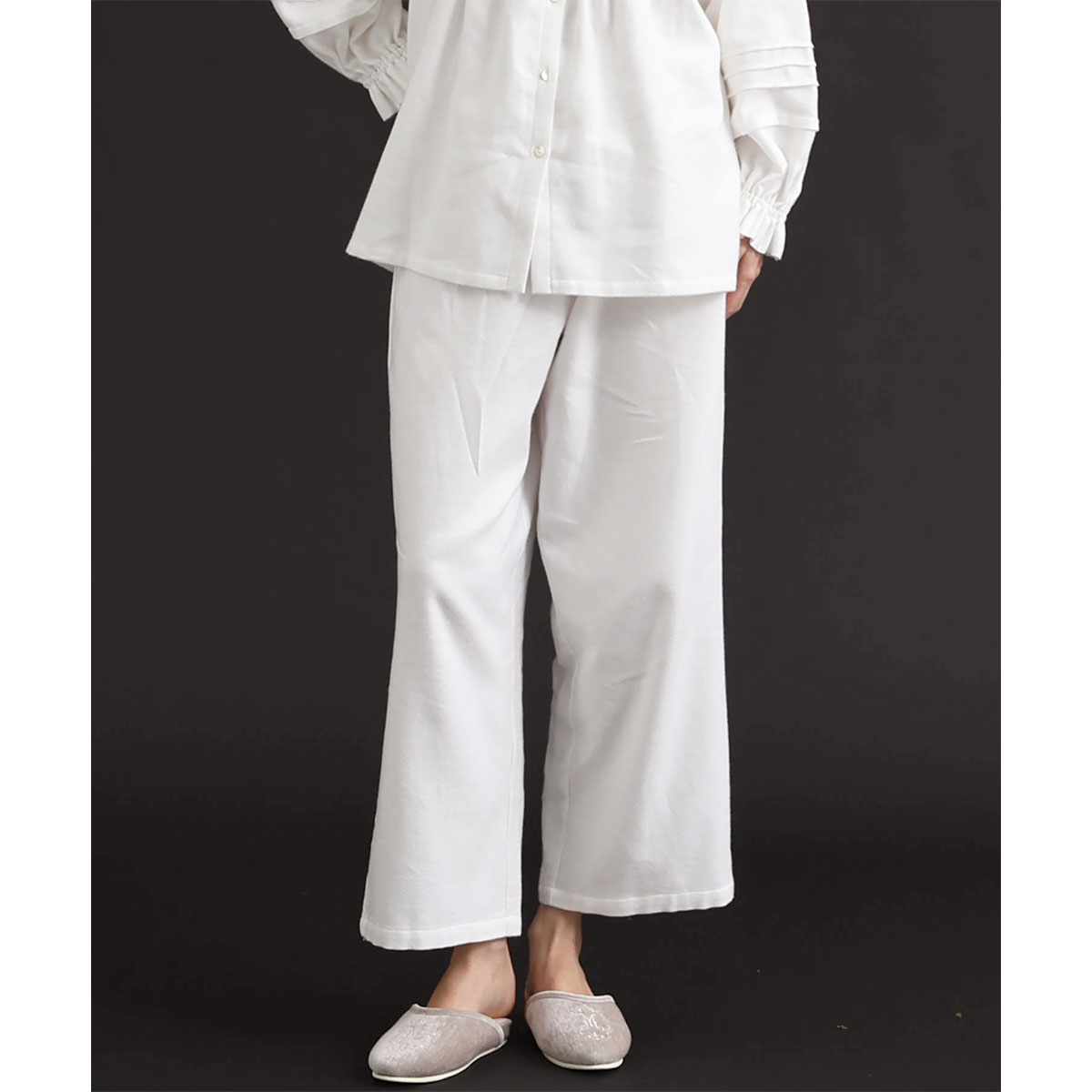 ナルエー パジャマ コットンフランネルシュクレフリルパジャマ ルームウェア 上下セット 長袖 前開き MoonTan by Narue Luxe(WH-ホワイト-M-L)