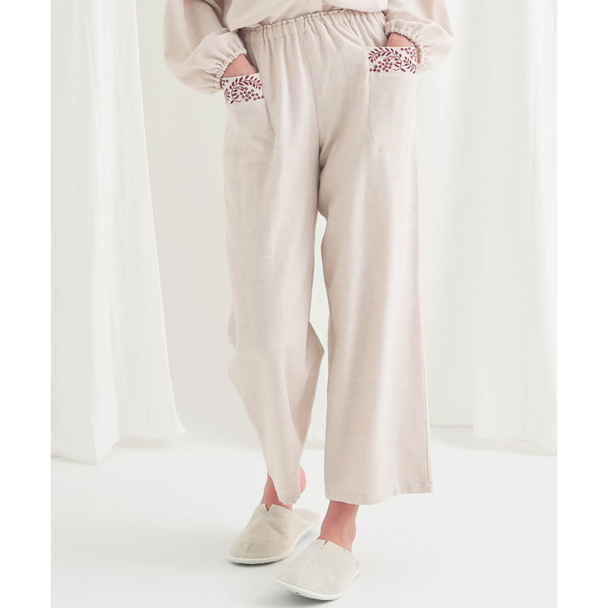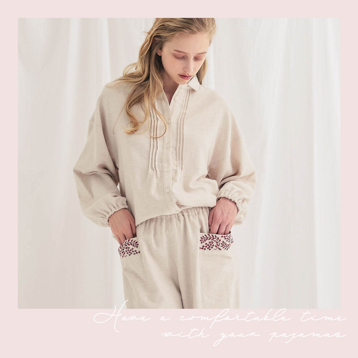 上下合わせた時のバランスにもこだわり、エフォートレスながら華やかさと品を兼ね備えた、大人の欲張りを満たす万能ルームウェアです。