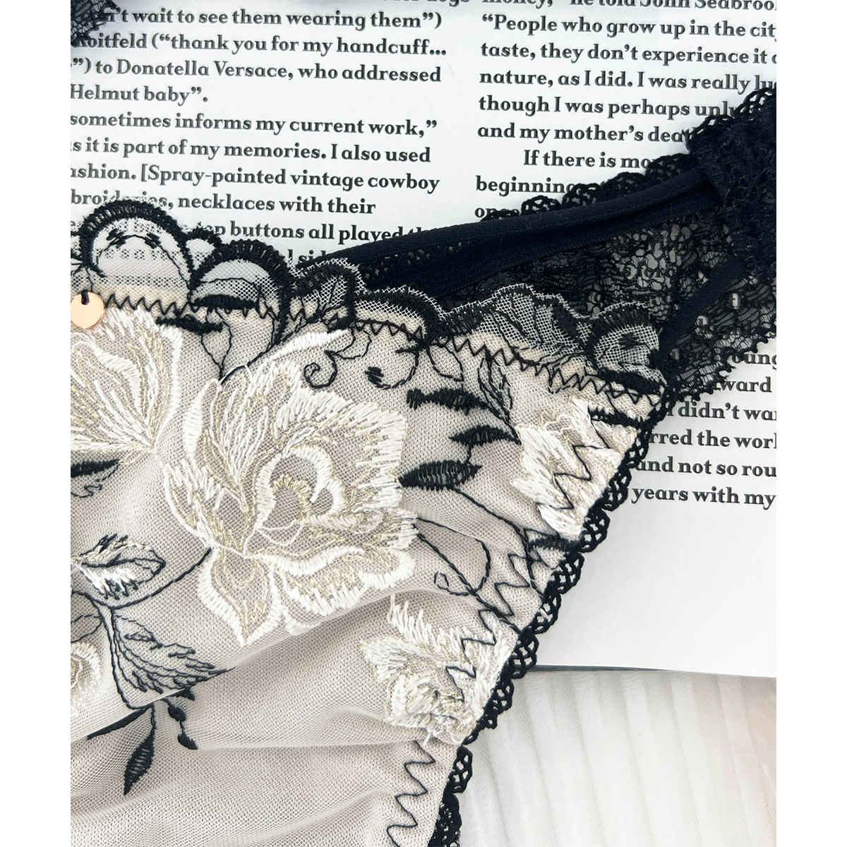 華奢なストリングがセクシーな中花刺繍レースTバック