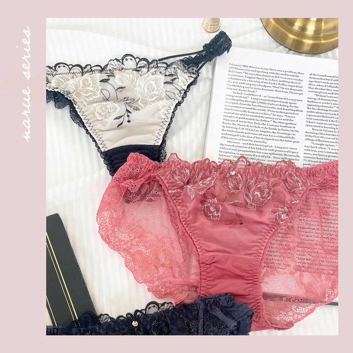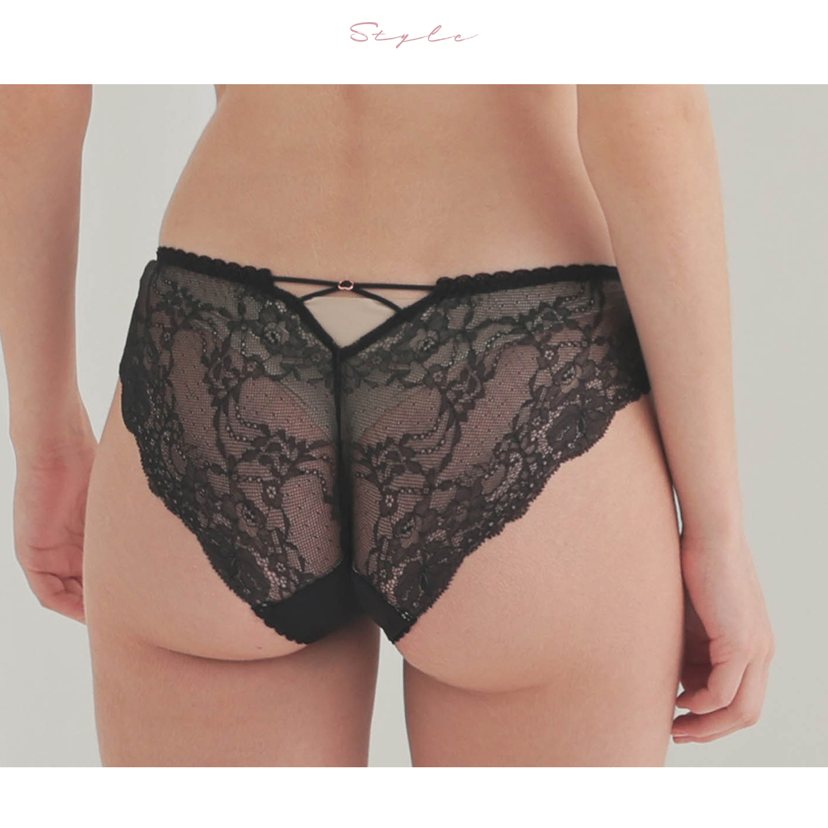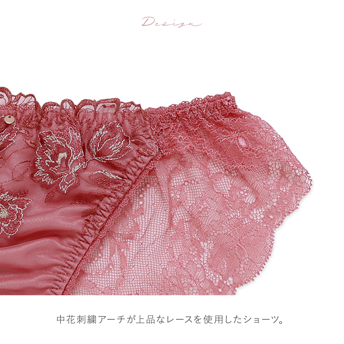 中花刺繍アーチが上品なレースを使用したショーツ。