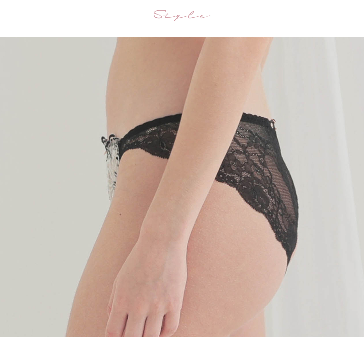 エレガントな中花刺繍レースを使用したバックストリングショーツ