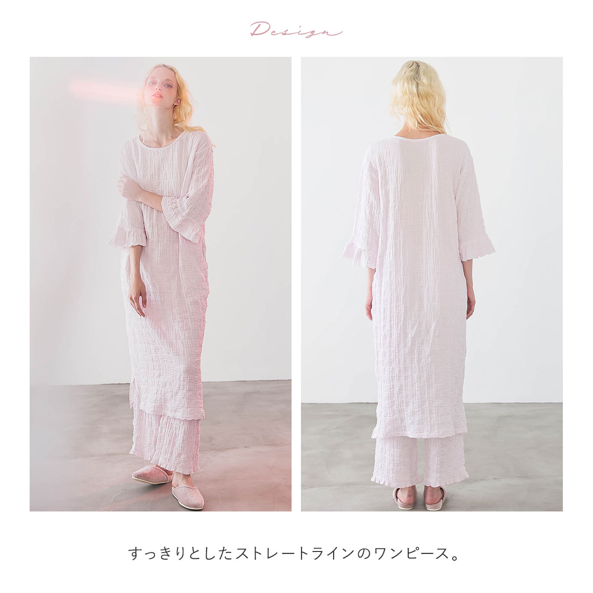 軽く爽やかな着心地のシャーリングガーゼストライプ柄ワンピース