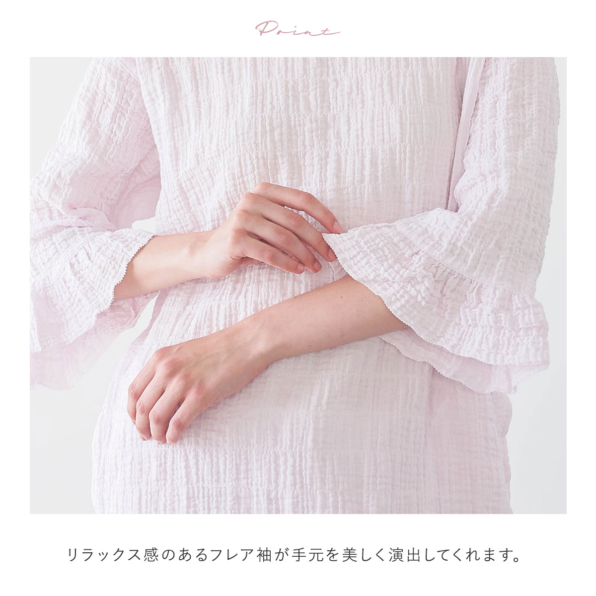 ナルエー パジャマ シャーリングダブルガーゼグレースワンピース ルームウェア ドレス 7分袖 ネグリジェ レディース NARUE