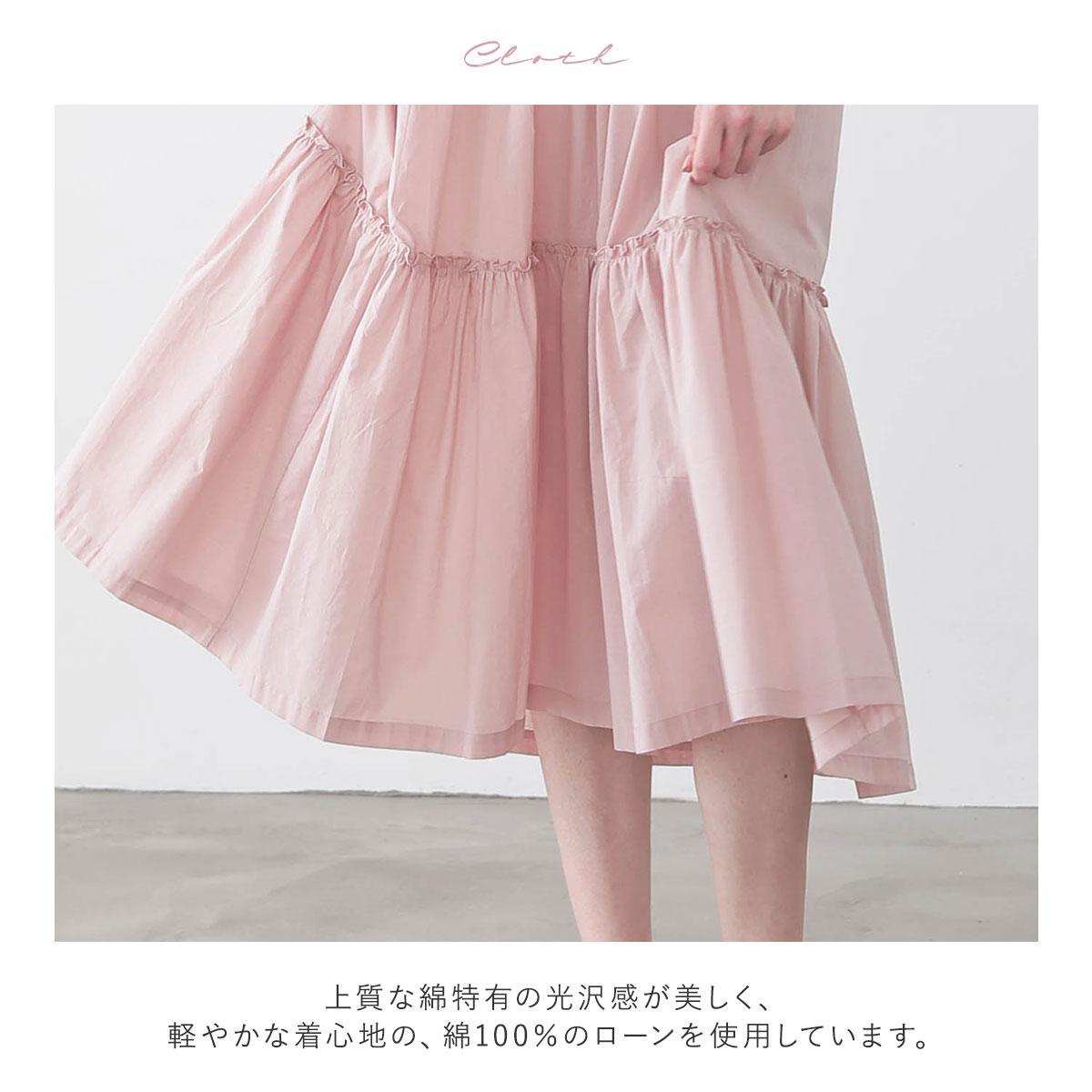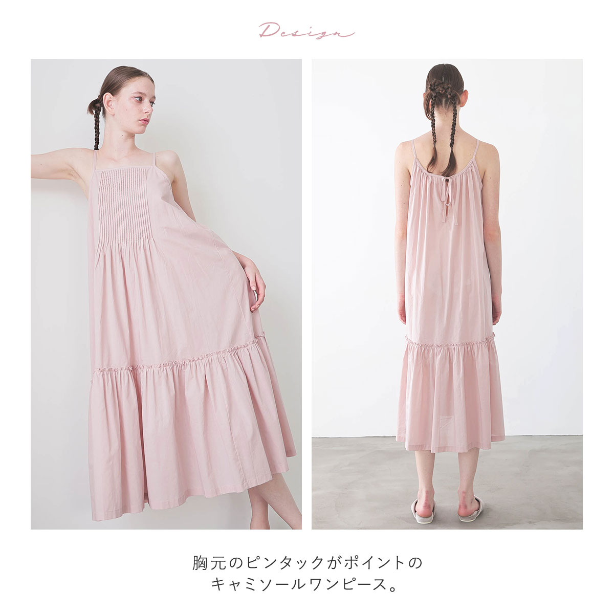 ピンタックと裾フレアがポイント★軽やか綿ローンキャミドレス