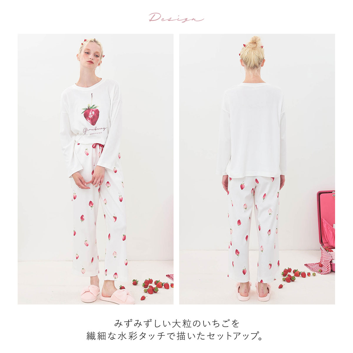 苺柄がキュート★吸湿吸水性に優れた綿100%スムースパジャマ