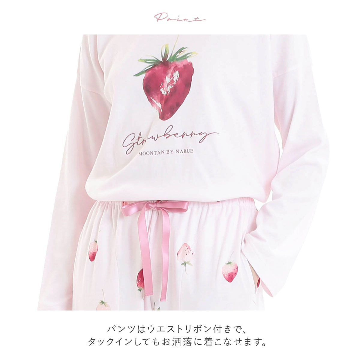 ナルエー パジャマ コットンスムースいちごセットアップ セットアップ 上下セット ルームウェア 長袖 綿100% NARUE