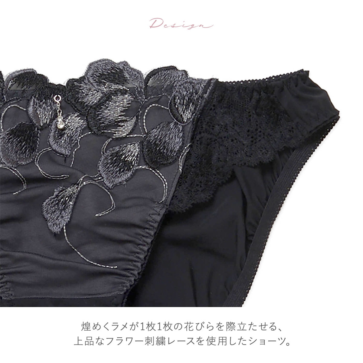 煌めくラメが花びらを際立たせる上品な花柄レースのショーツ