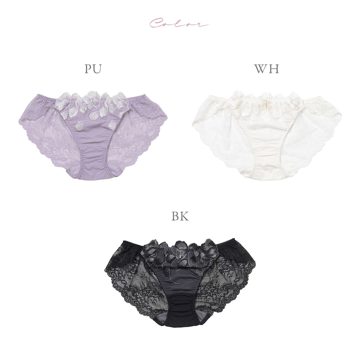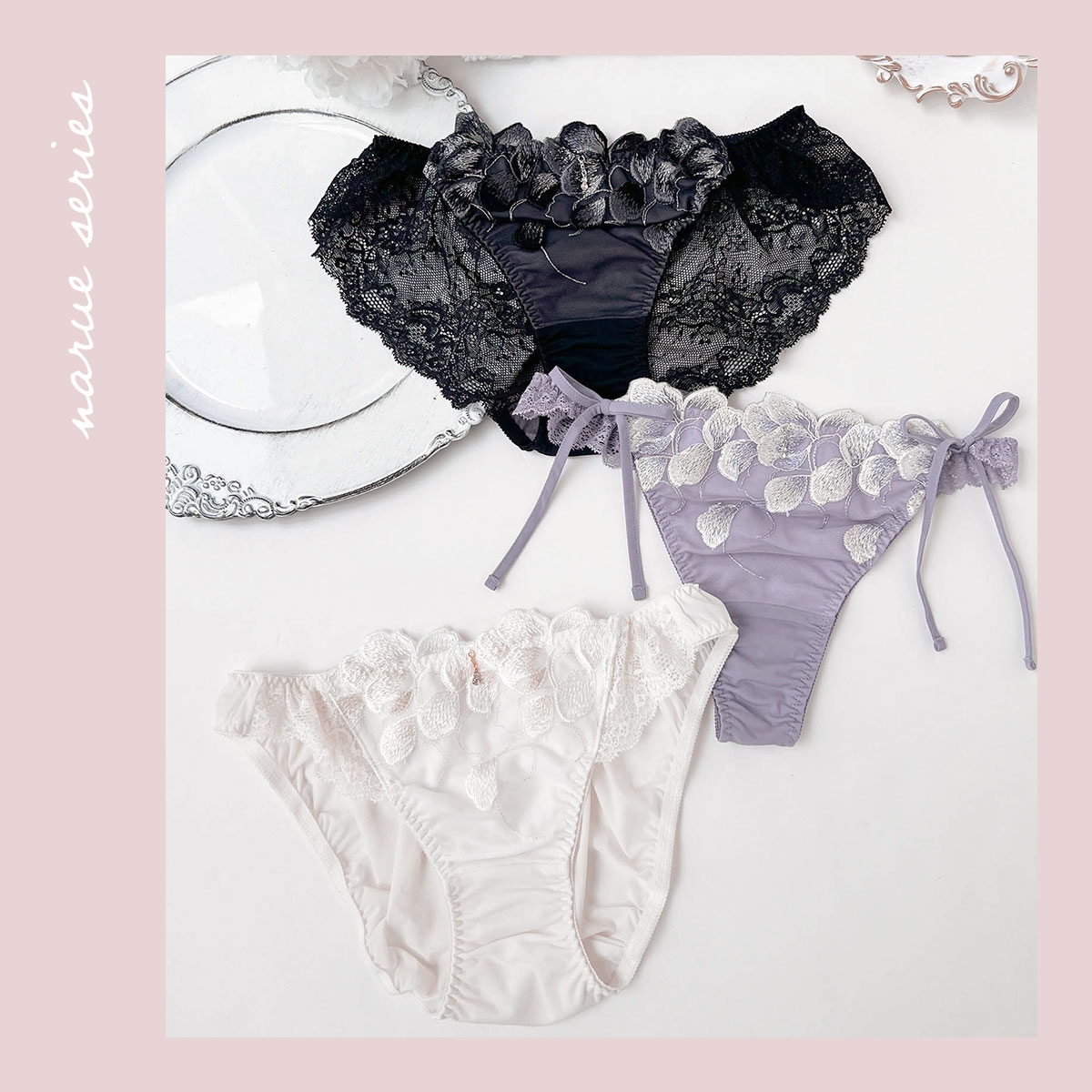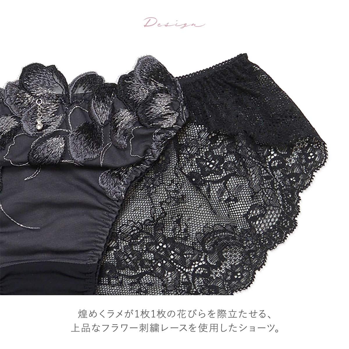 煌めくラメが花びらを際立たせる上品な花柄刺繍レースのショーツ