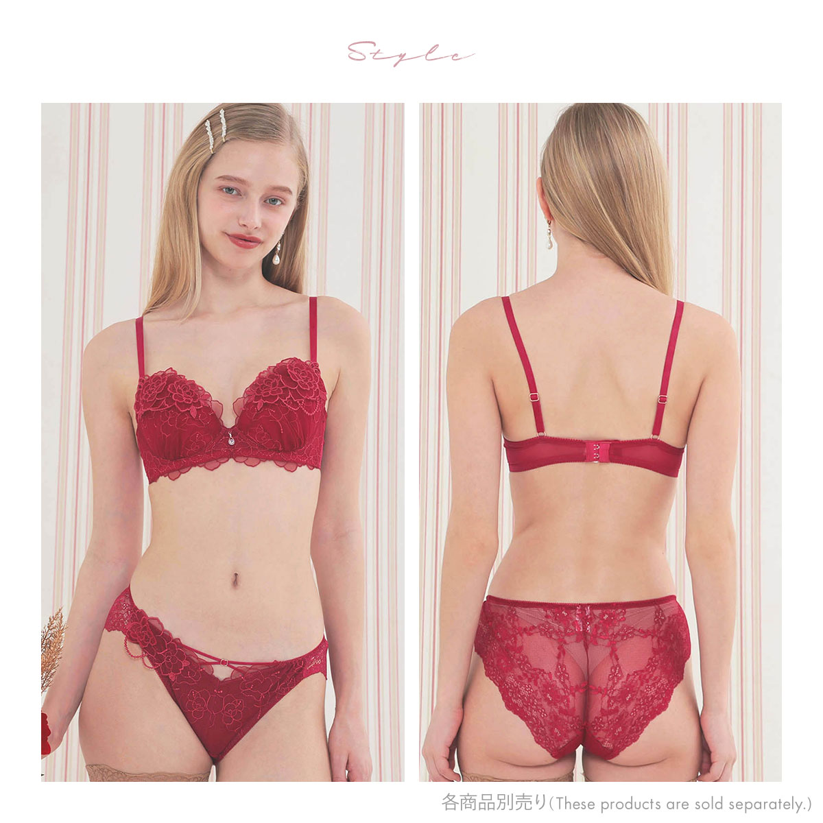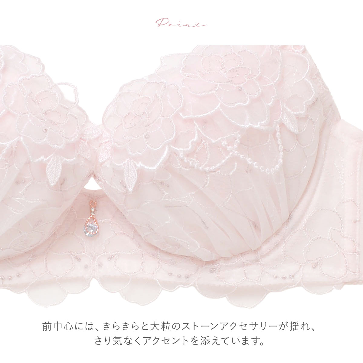 ふんわり重なり合うローズアップリケがロマンティックな、華やかでシーズンムード高まるブラジャー。ラグジュアリーながらも、フェミニンな透明感も演出してくれます。