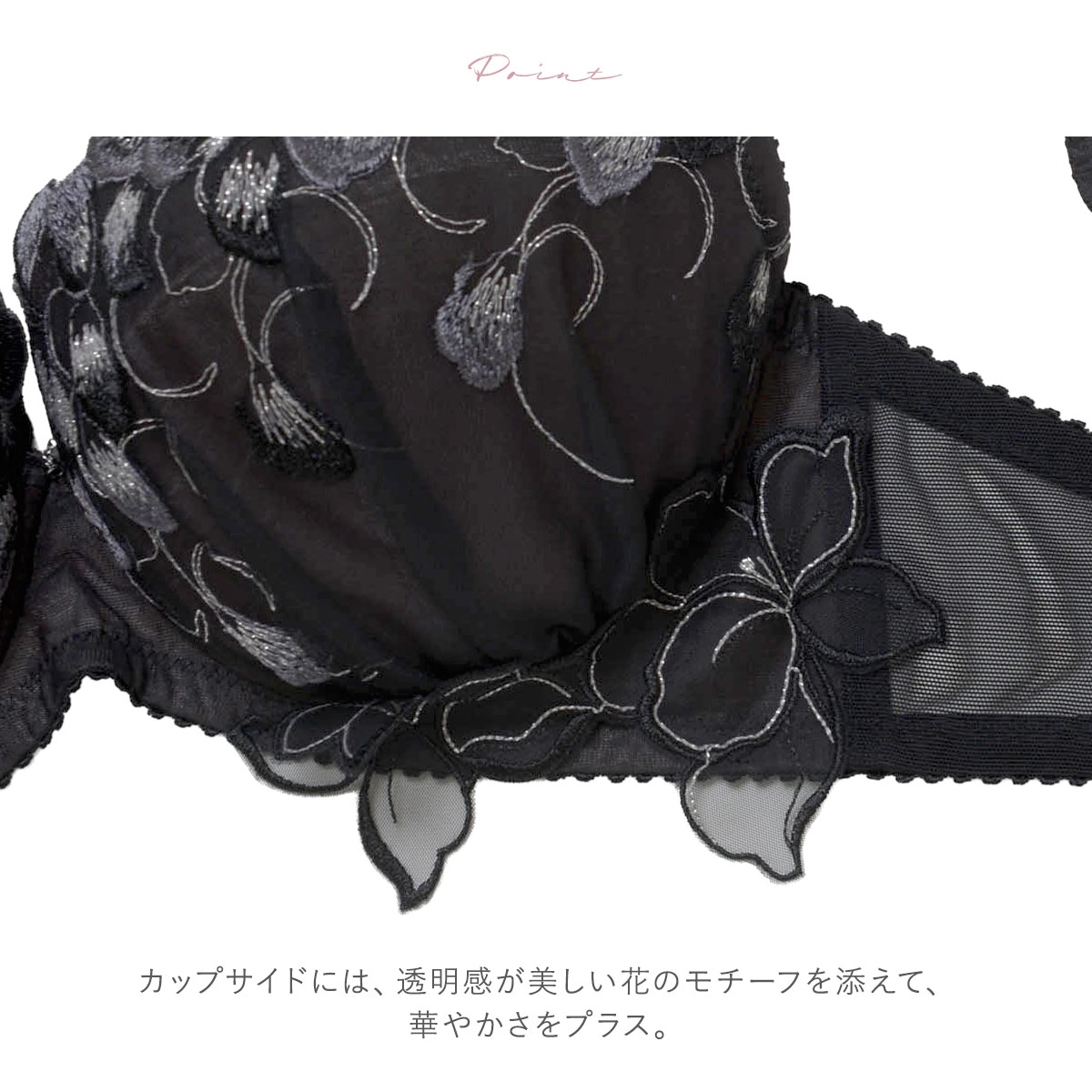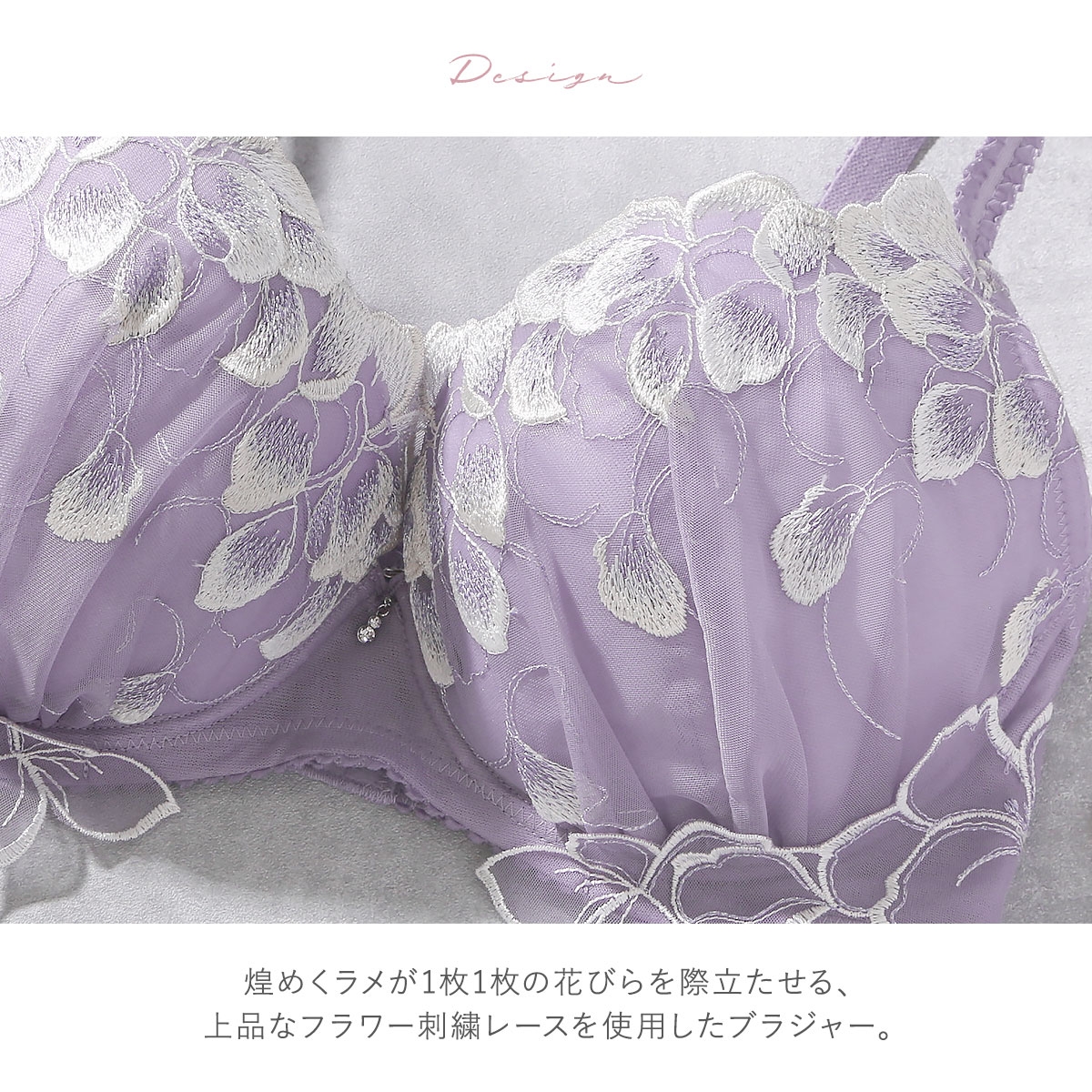 煌めくラメが花びらのラインを際立たせる上品な花柄レースブラ