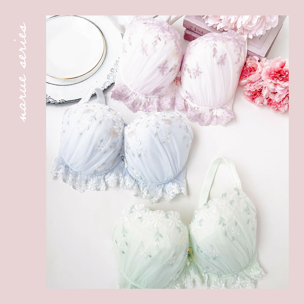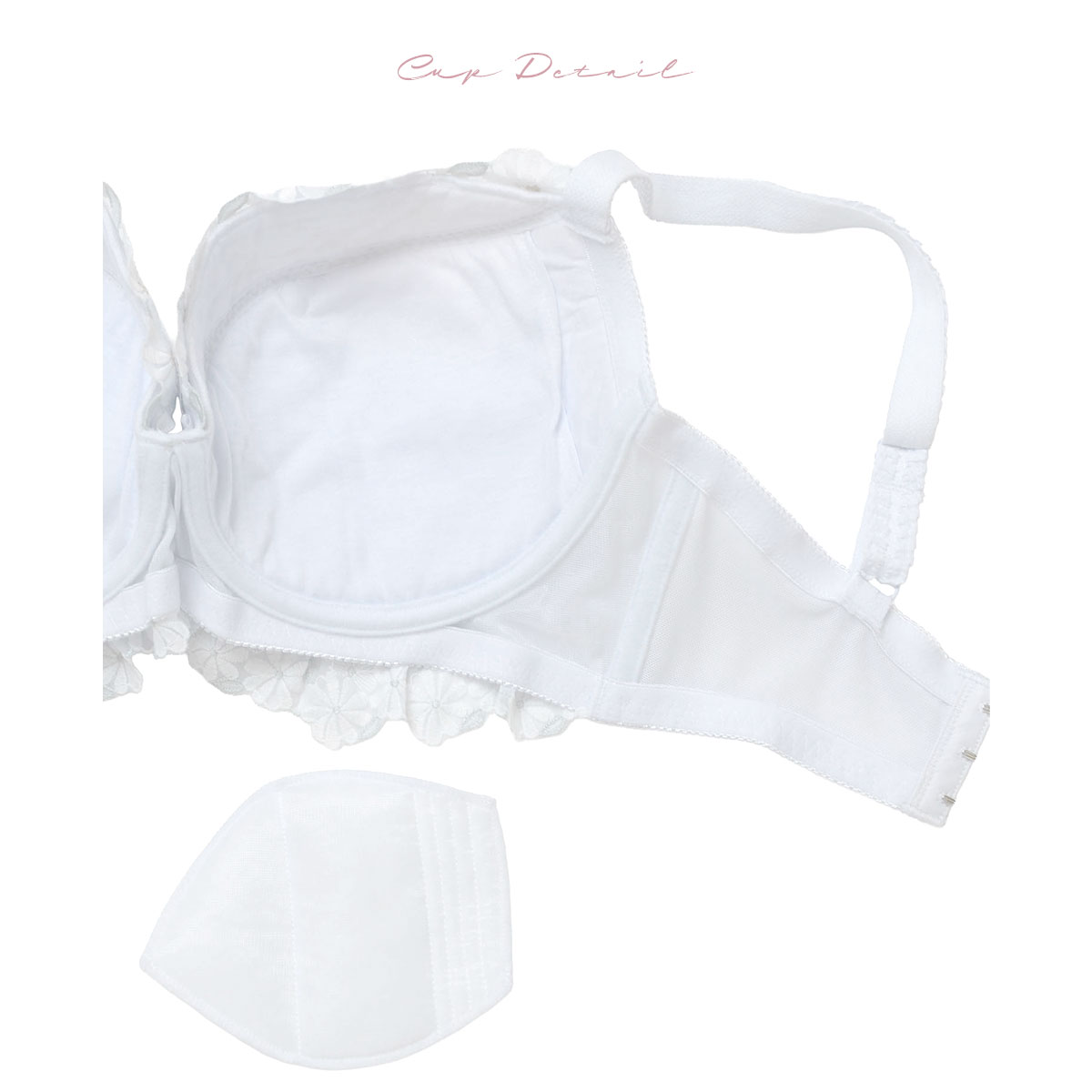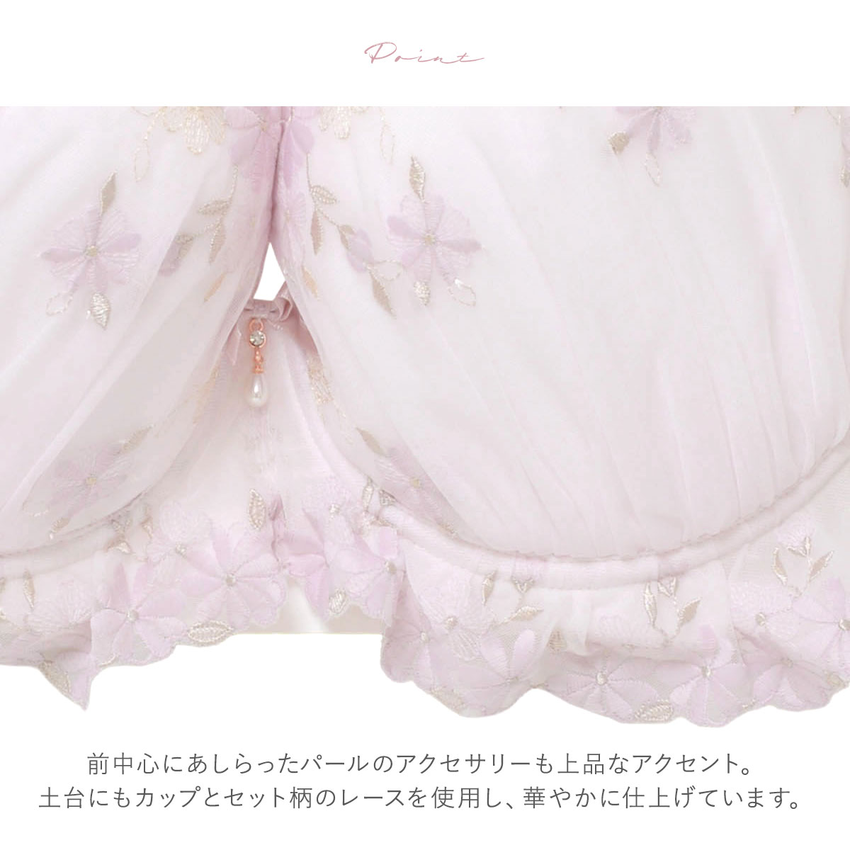 土台にもカップとセット柄のレースを使用し、華やかに仕上げています。