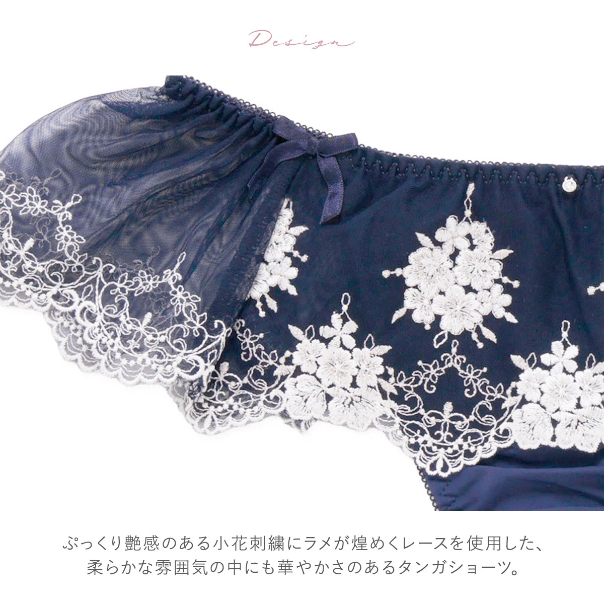 煌めく小花刺繍レースがロマンティックなスカート風ショーツ
