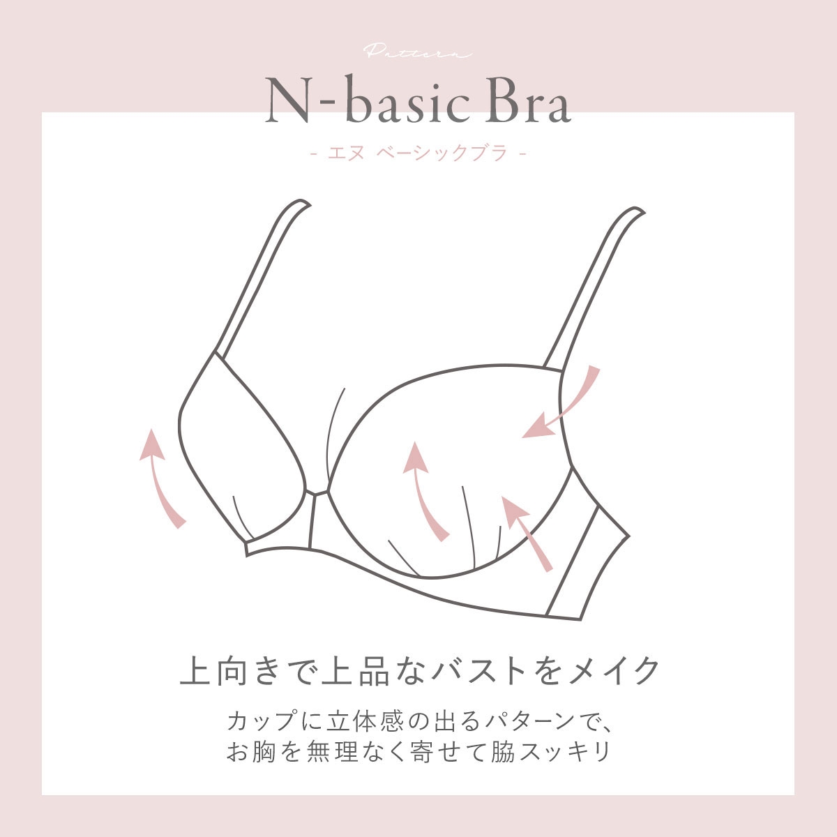 カップパターンは「N-basic -more fit-」を採用しており、安定感のある着け心地はそのままに、「楽して盛れる」機能をプラス。