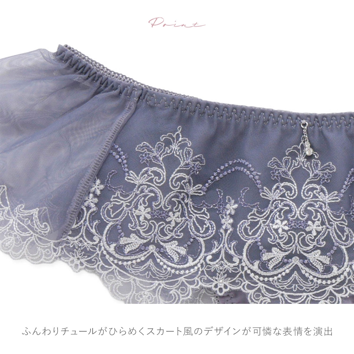 煌めく刺繍とスカート風のチュールがロマンティックなTバック