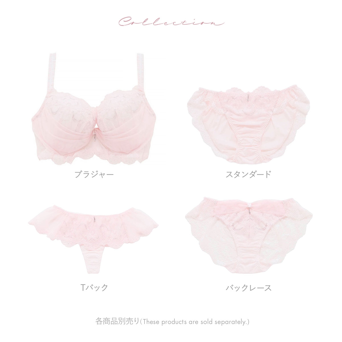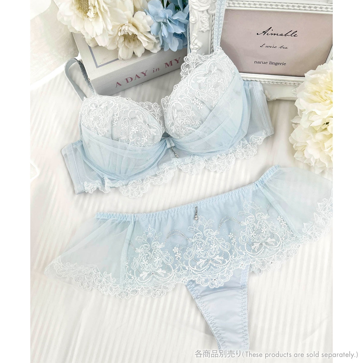 ふんわりチュールがひらめくスカート風のデザインが可憐な表情を演出します。