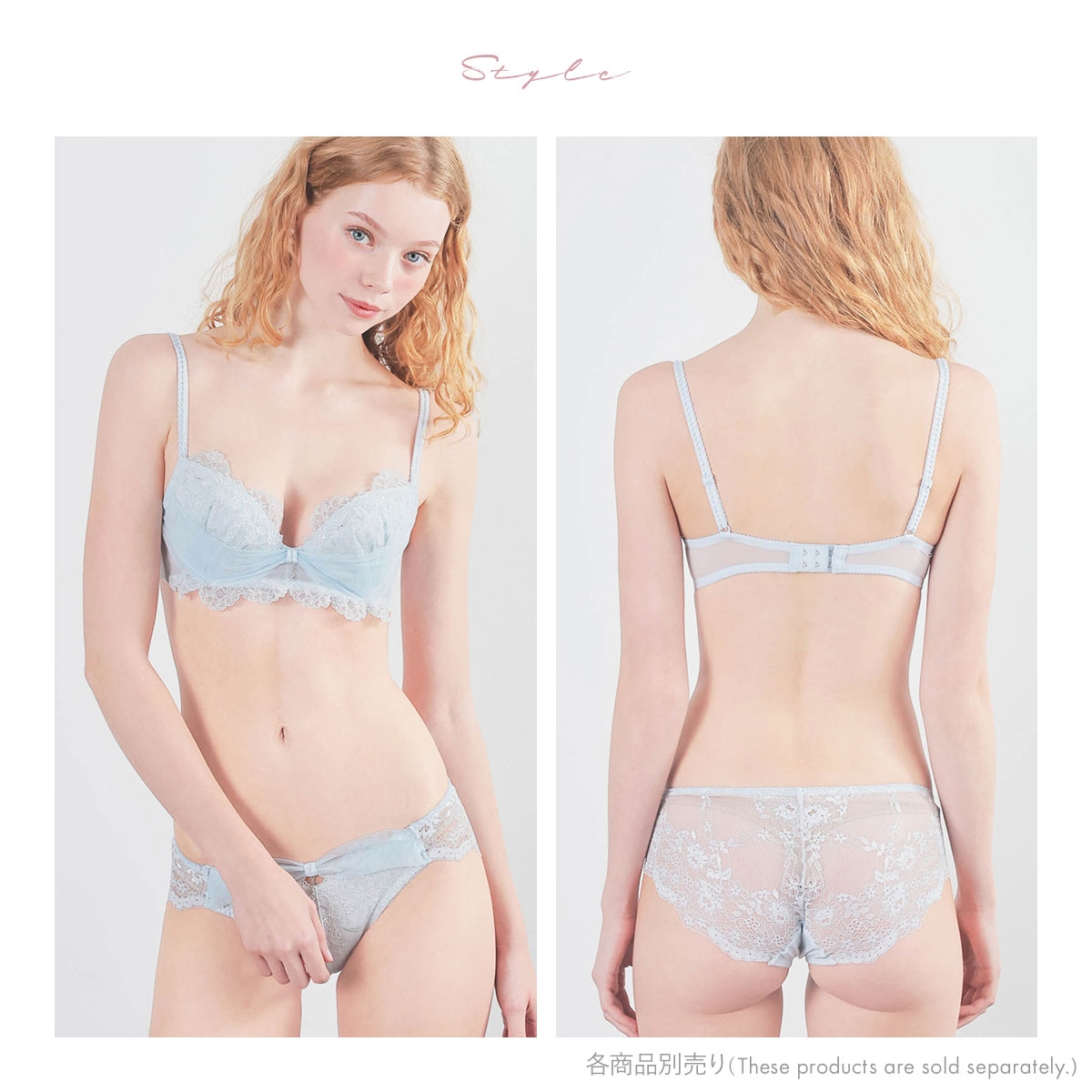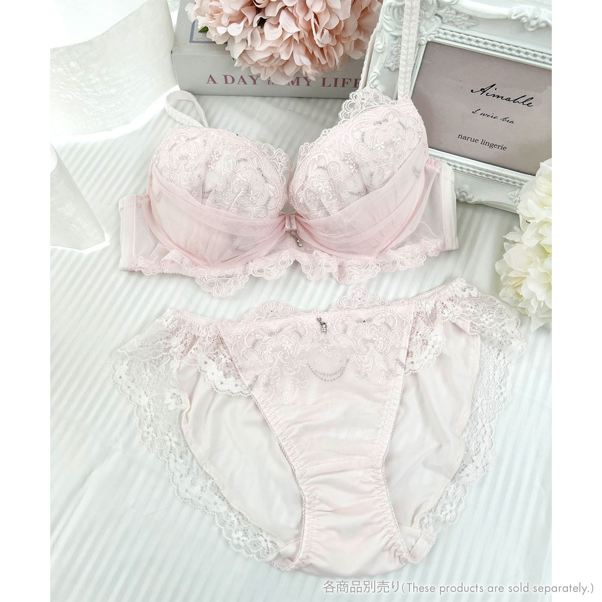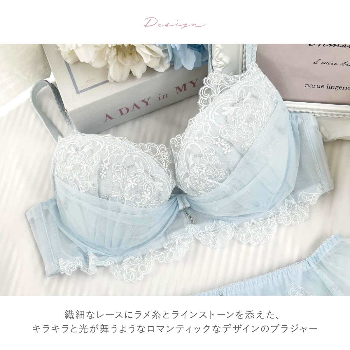 繊細なレースにラメ糸とラインストーンを添えた、キラキラと光が舞うようなロマンティックなデザインのブラジャー。