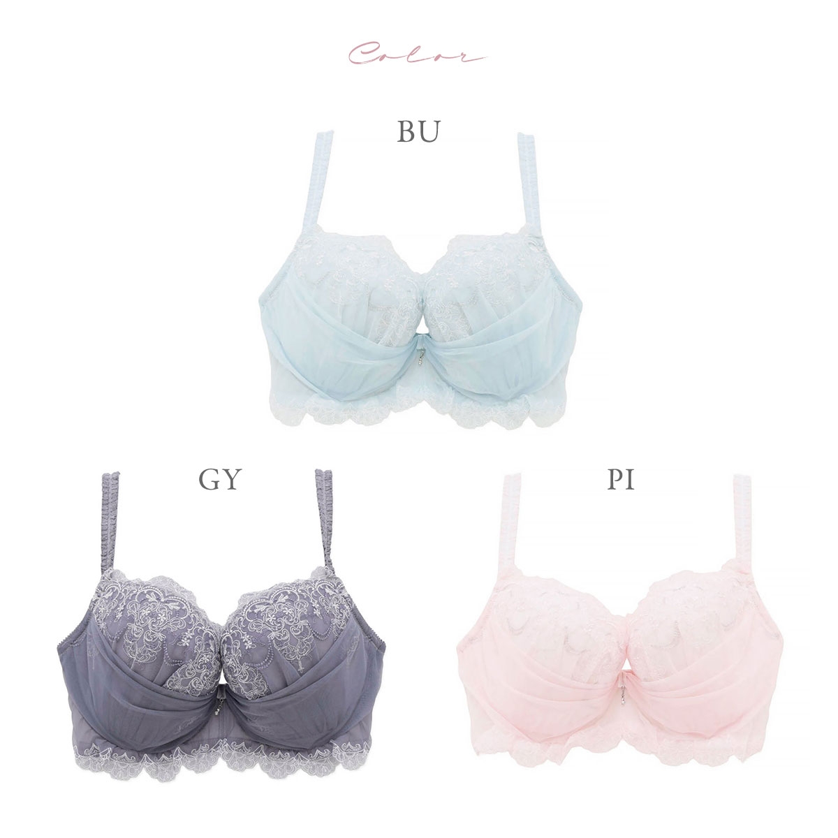 煌めくレースにチュールドレープが上品★脇すっきりグラマーブラ