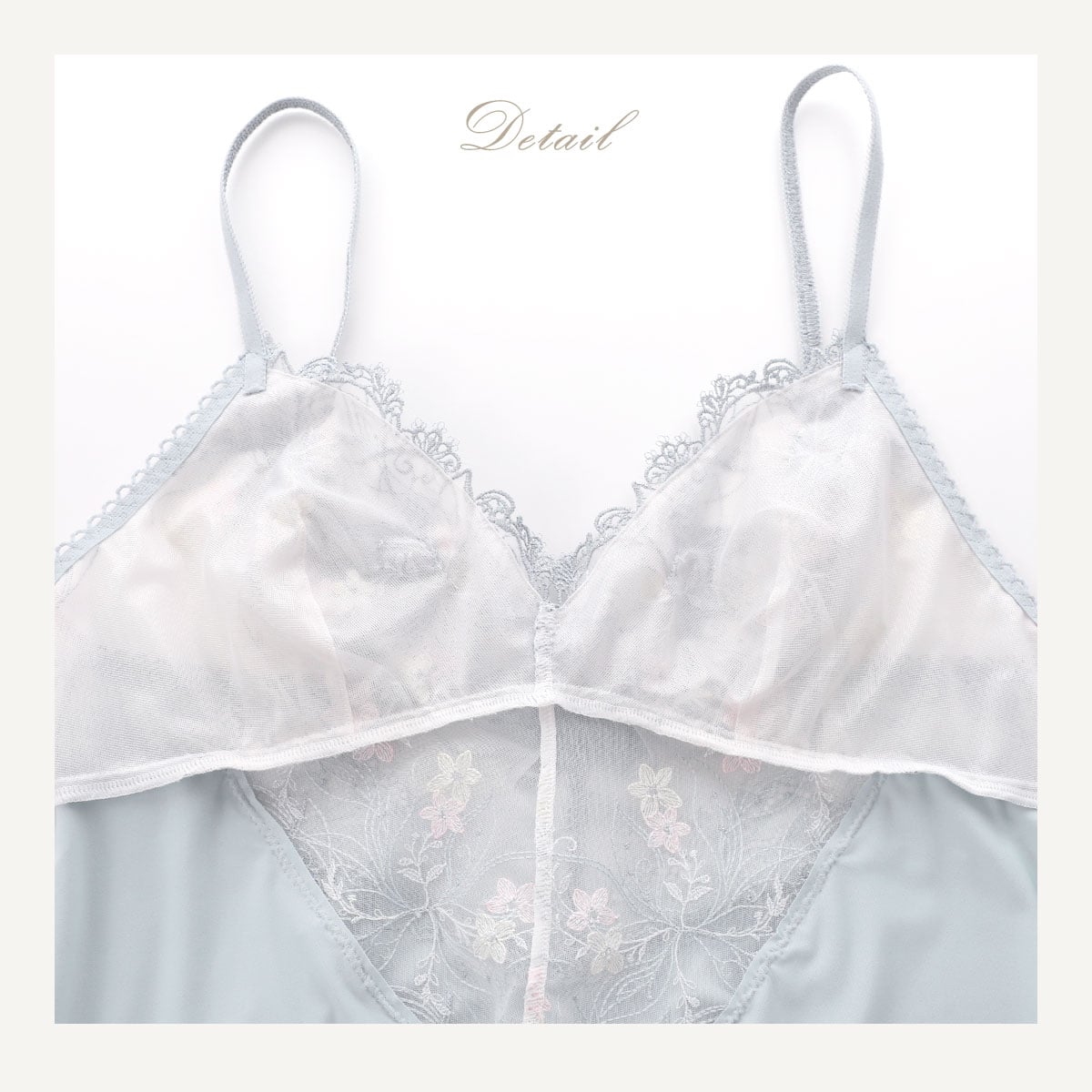 | 仕 様 | ・透感:レース部にあり ・肩紐調節:可能 ・カップなし ・スリット:あり ※生地の使用部分により、柄の出方が異なる場合がございます。予めご了承ください。 |
