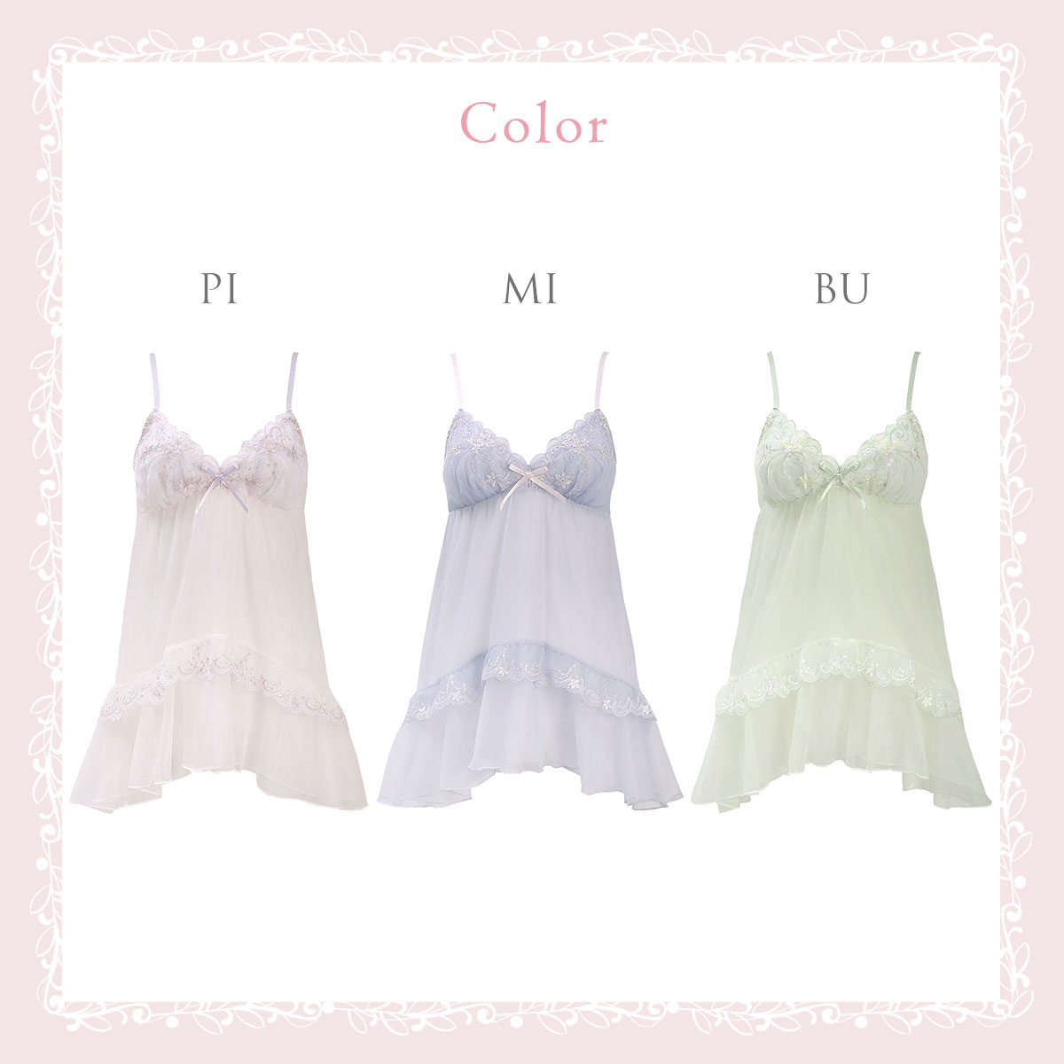 カラーPI-ピンク、MI-ミント、PU-パープル