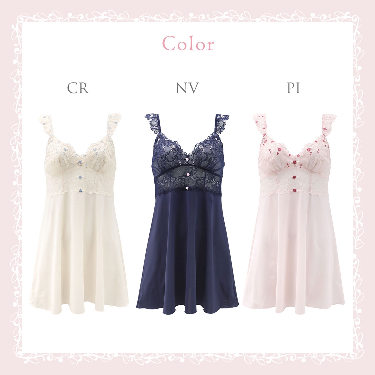 | カラー | CR-クリーム、NV-ネイビー、PI-ピンク |