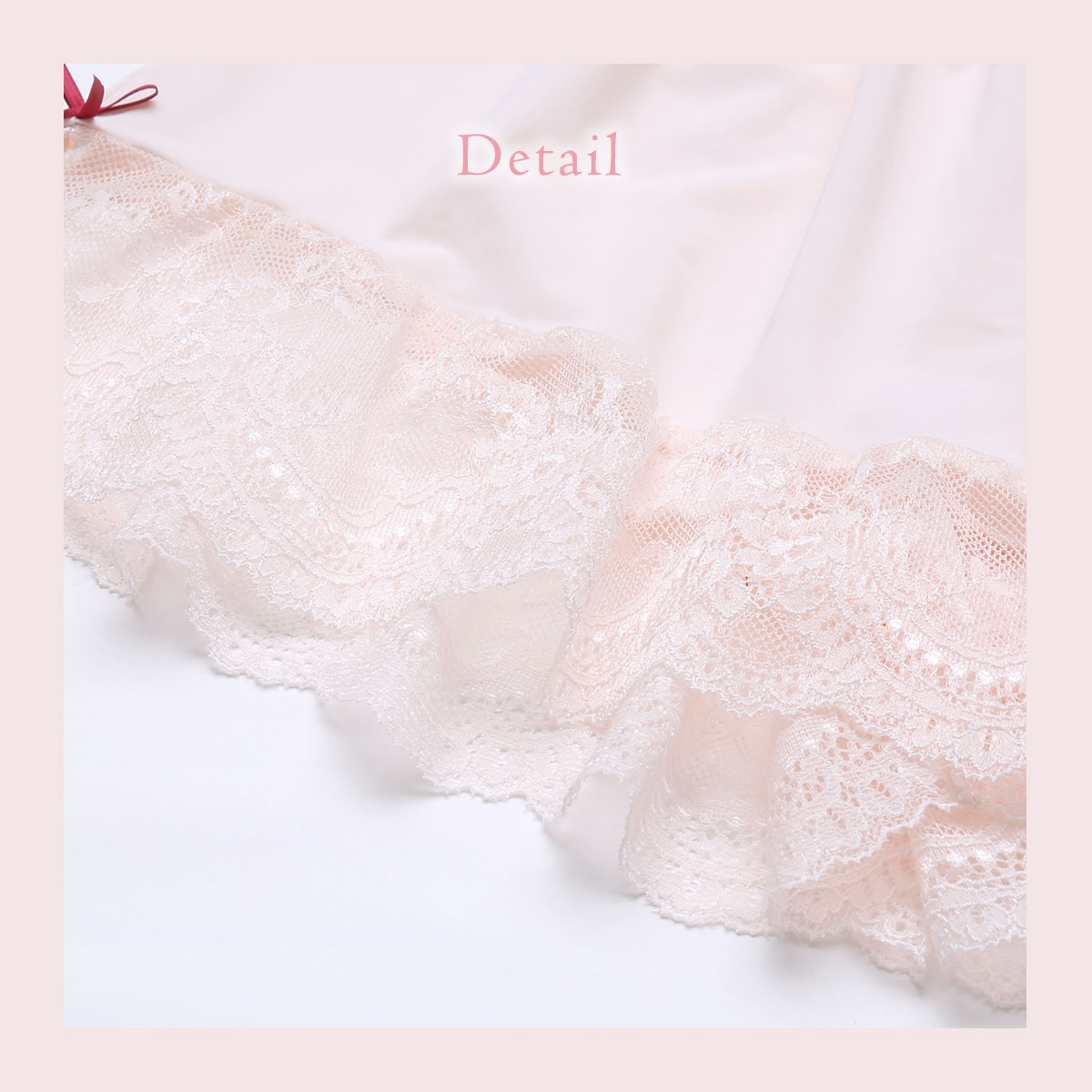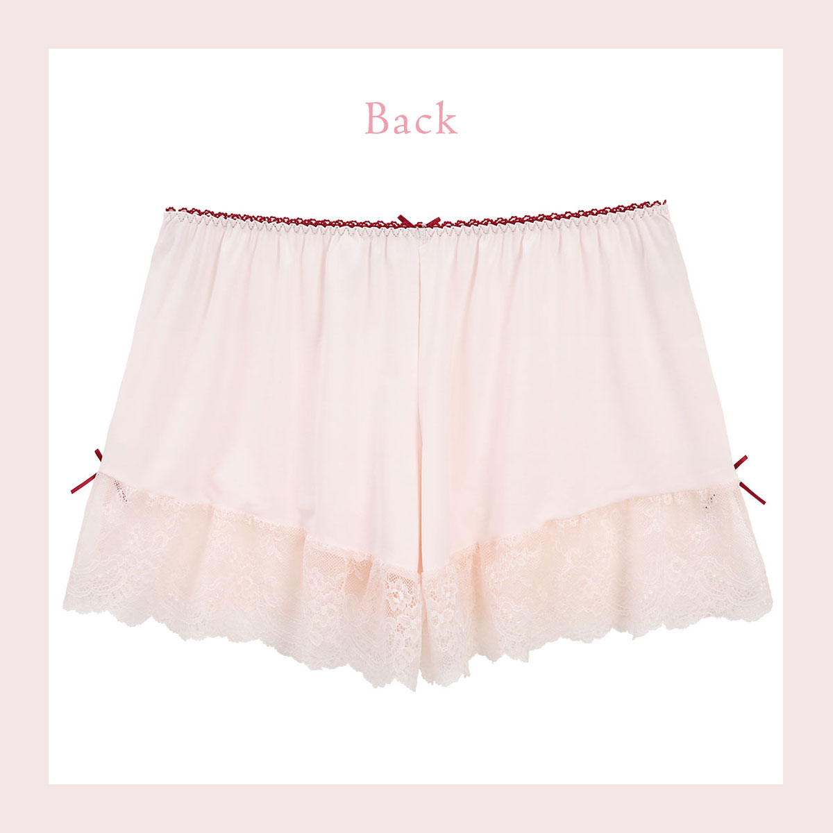 裾に繊細なレースをあしらったフェミニンなデザインのタップパンツ。ウエストはゴムでラクチンです。身生地はすべりがよい素材を使用しており、さらりとした気持ちの良い着心地です。伸縮性に優れているので、着用していてストレスを感じにくい仕様になっています。