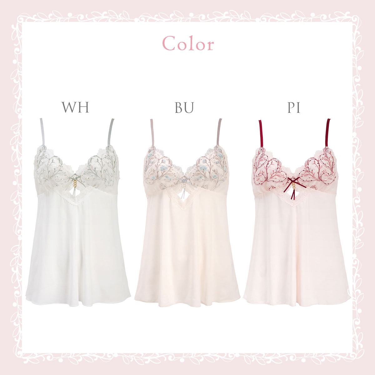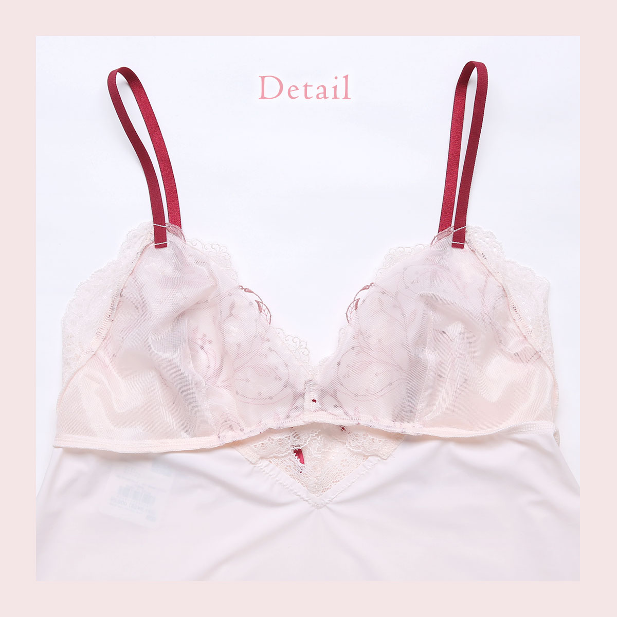 | 仕 様 | ・カップなし ・透感:レース部にあり ・肩紐調節:可能 ・スリット:なし