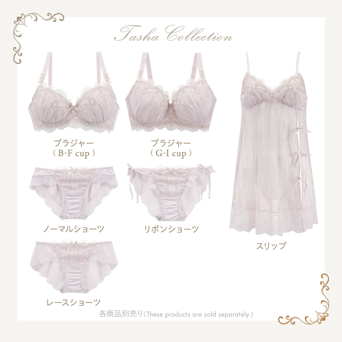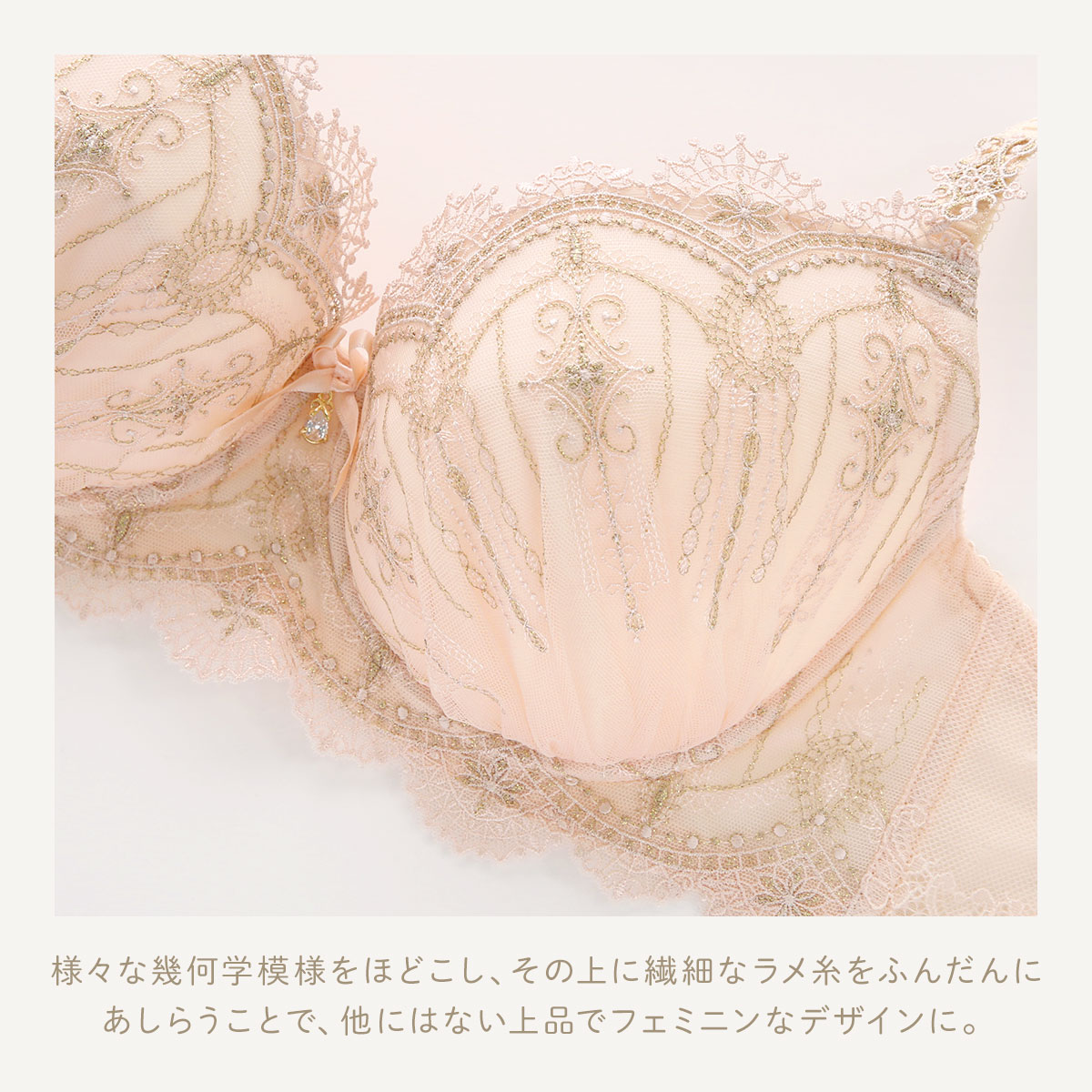 ヨーロッパのゴシック調の建物をイメージした、リサマリレーヌ「ターシャ」コレクション。レースにはシンメトリーに様々な幾何学模様をほどこして、ゴシック調の建物を連想させるクラシカルな印象に。その上からキラキラと輝く繊細なラメ糸をふんだんにあしらい、1つ1つの柄の細やかさを引き立てることで、他にはない上品でフェミニンなデザインに仕上がりました。