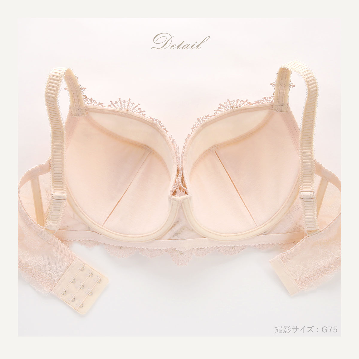 前中心が高く安定感のある、S Make Type。バストを支えることに優れたパターンで、バストを下から上へ引き上げます。サイドはボーン入りで、お肉を逃さずすっきりしたシルエットへ。また、カップ中央部分にボーンを入れることにより、バストをしっかり支えてくれます。パッドポケット付きなので、お手持ちのパッドでボリュームを調整できます。ホックは3段3列なので安定感があります。