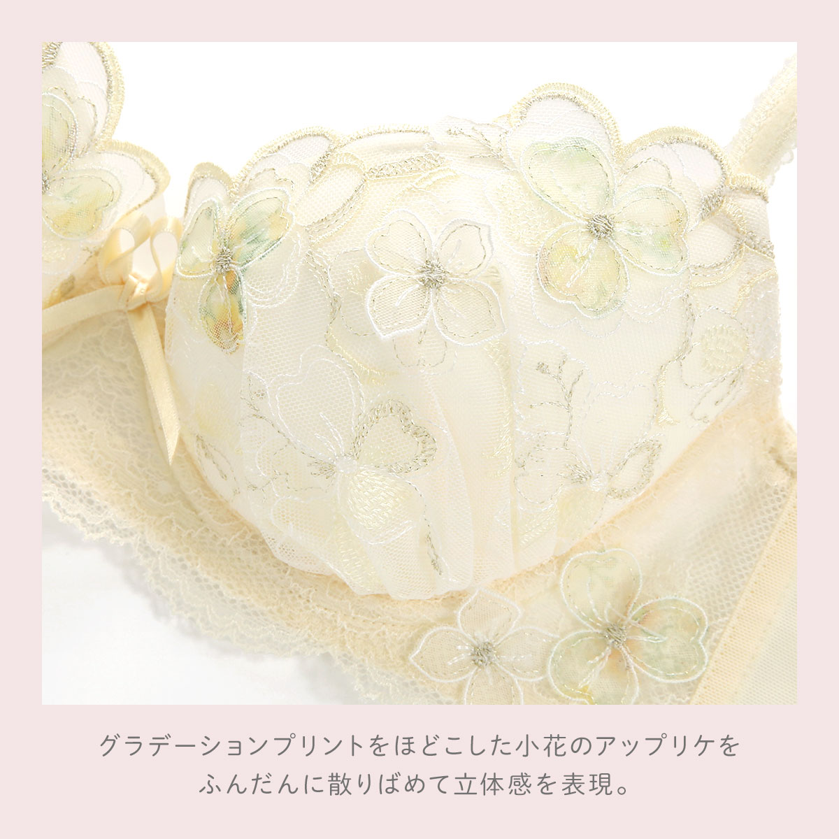 色とりどりのお花のアップリケを散りばめた可憐なデザインがロマンティックなレトロさを演出する、リサマリ「マティア」コレクション。グラデーションプリントをほどこした小花のアップリケをふんだんに散りばめて立体感を表現することで、お花畑をぎゅっと詰め込んだような華やかな印象に仕上がりました。