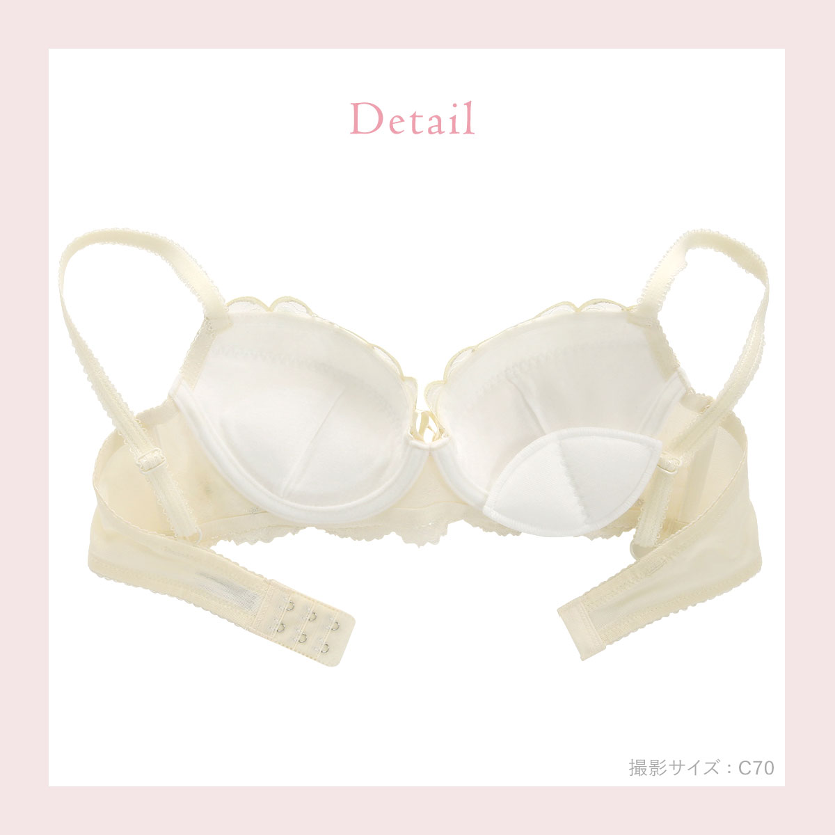 カップパターンは、ナチュラルな谷間と安定感、両方欲しい方におすすめのスウィートリッチパターンです。少し低めの土台があるため、安定感も兼ね備え、丸くて可愛い女性らしいシルエットを演出します。取り外し可能なパッドでボリューム調整もできます。